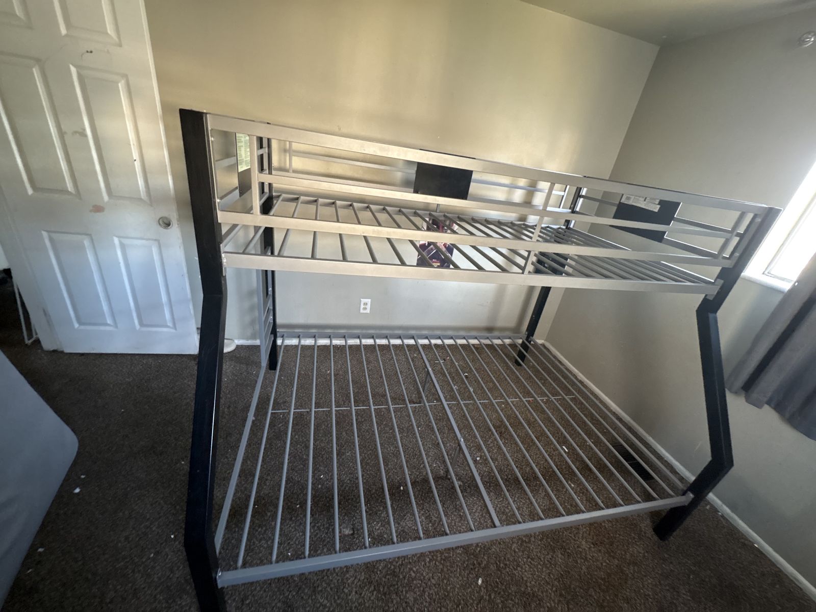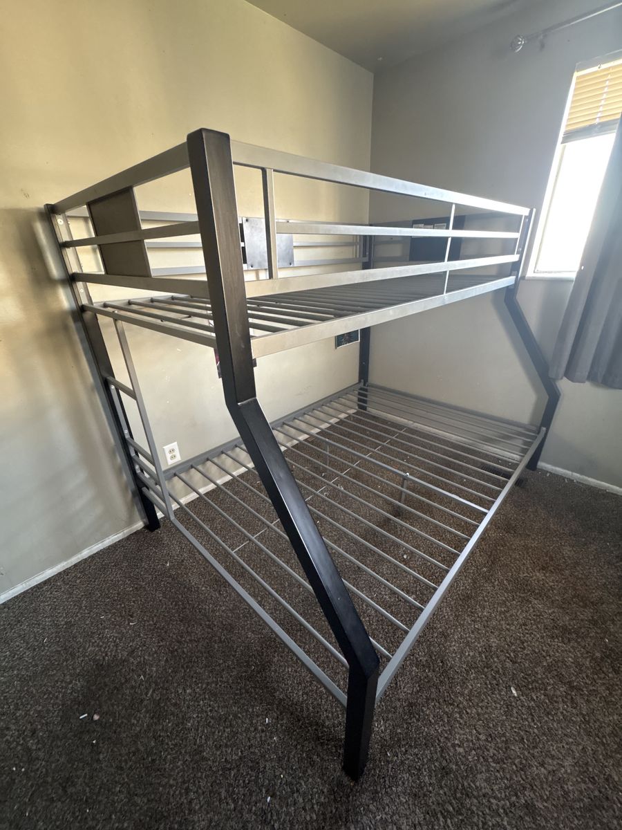 Twin over full bunk bed no mattress included! Txt is best I work call center