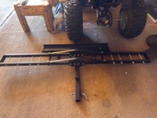 New only used once steel receiver hitch motorcycle carrier with ramp and 500 pound carrying capacity. Nothing wrong with it we just upgraded to a two place carrier. Fits a 2" receiver.
