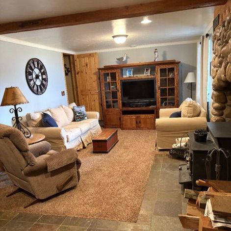 Log Cabin on Sweetwater hill with Bear Lake view. 1000 square ft on main level. 1000 sq ft in lower level. 600 sq ft in loft. Corner lot. One owner, furnished ready for your family to enjoy.