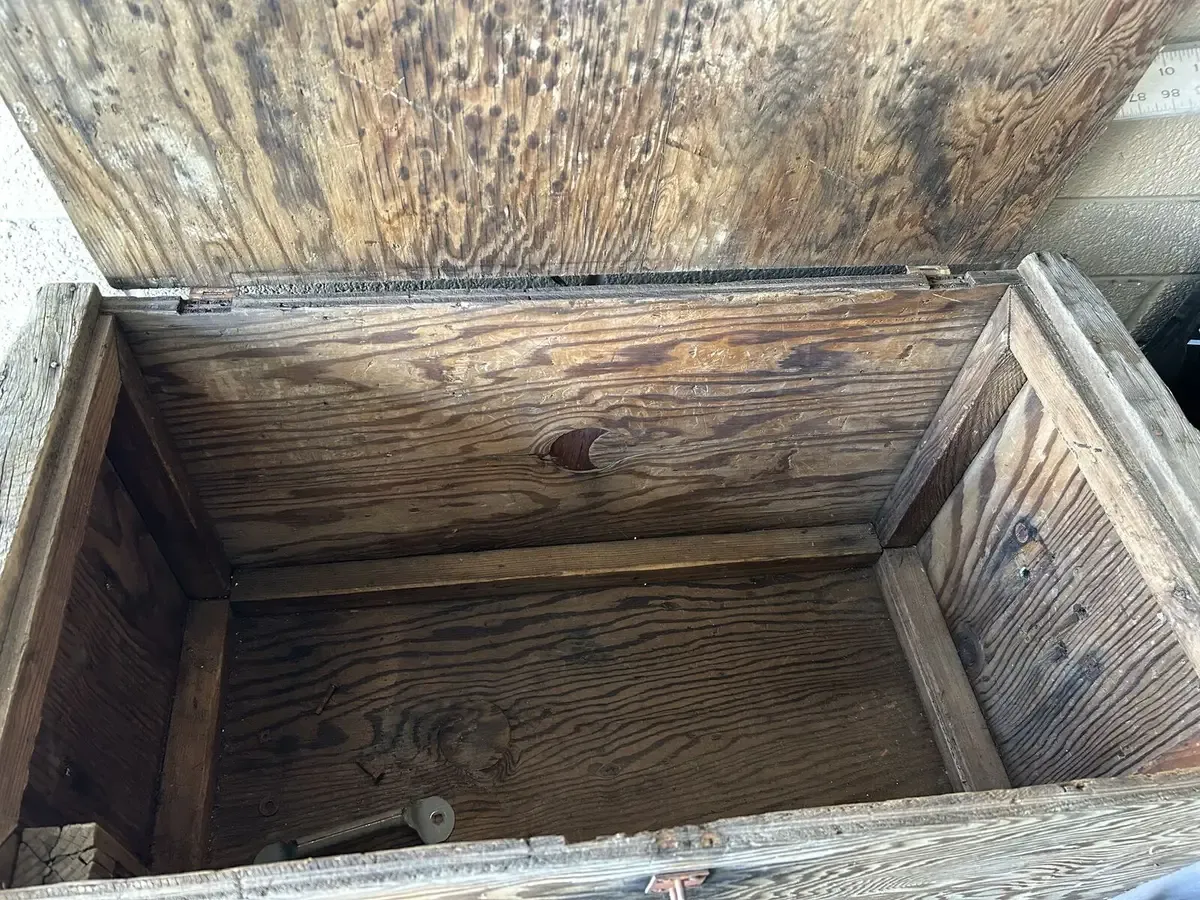 PayPalThis is completely weathered but in excellent condition. Extremely heavy solid with nails screws and a padlock. The trunk is 18" x 34" x 18" tall. This could easily be redone or left beautiful as it is. There is absolutely nothing wrong with this. Would be beautiful as a coffee table or a side table filled with blankets or whatever you would have. $99