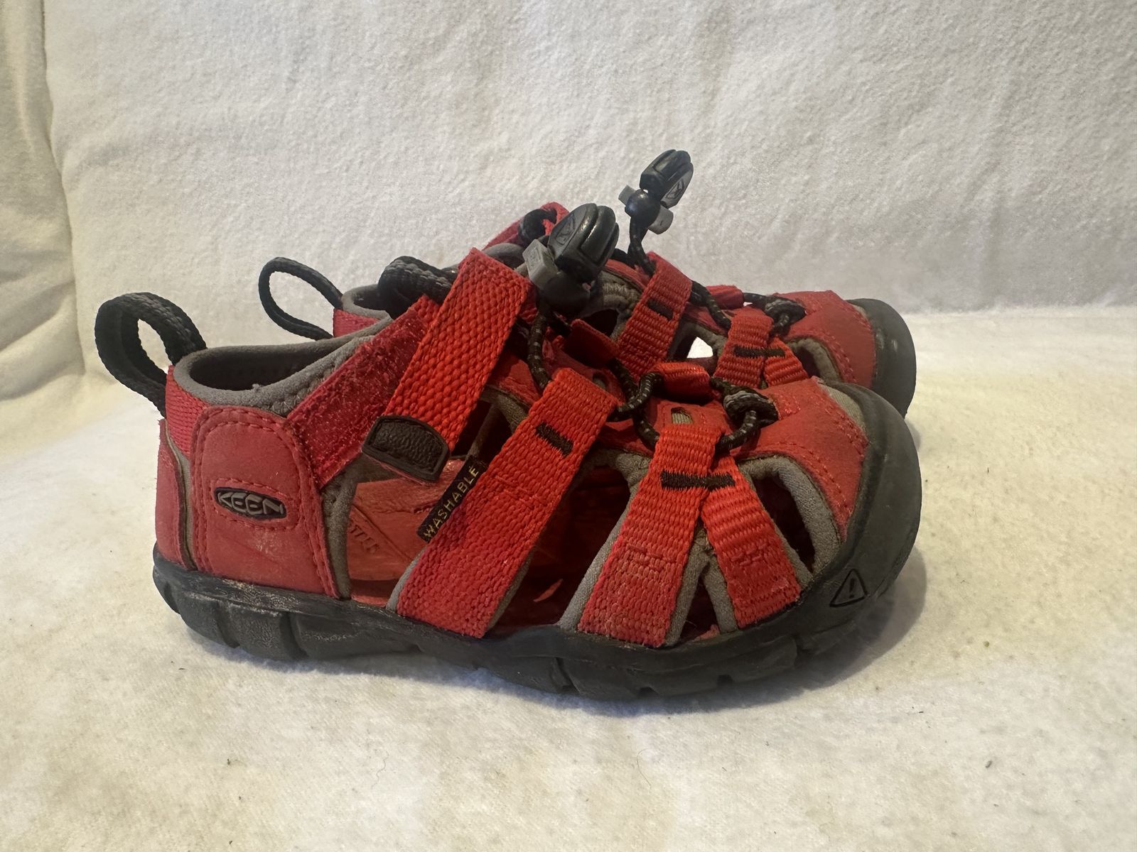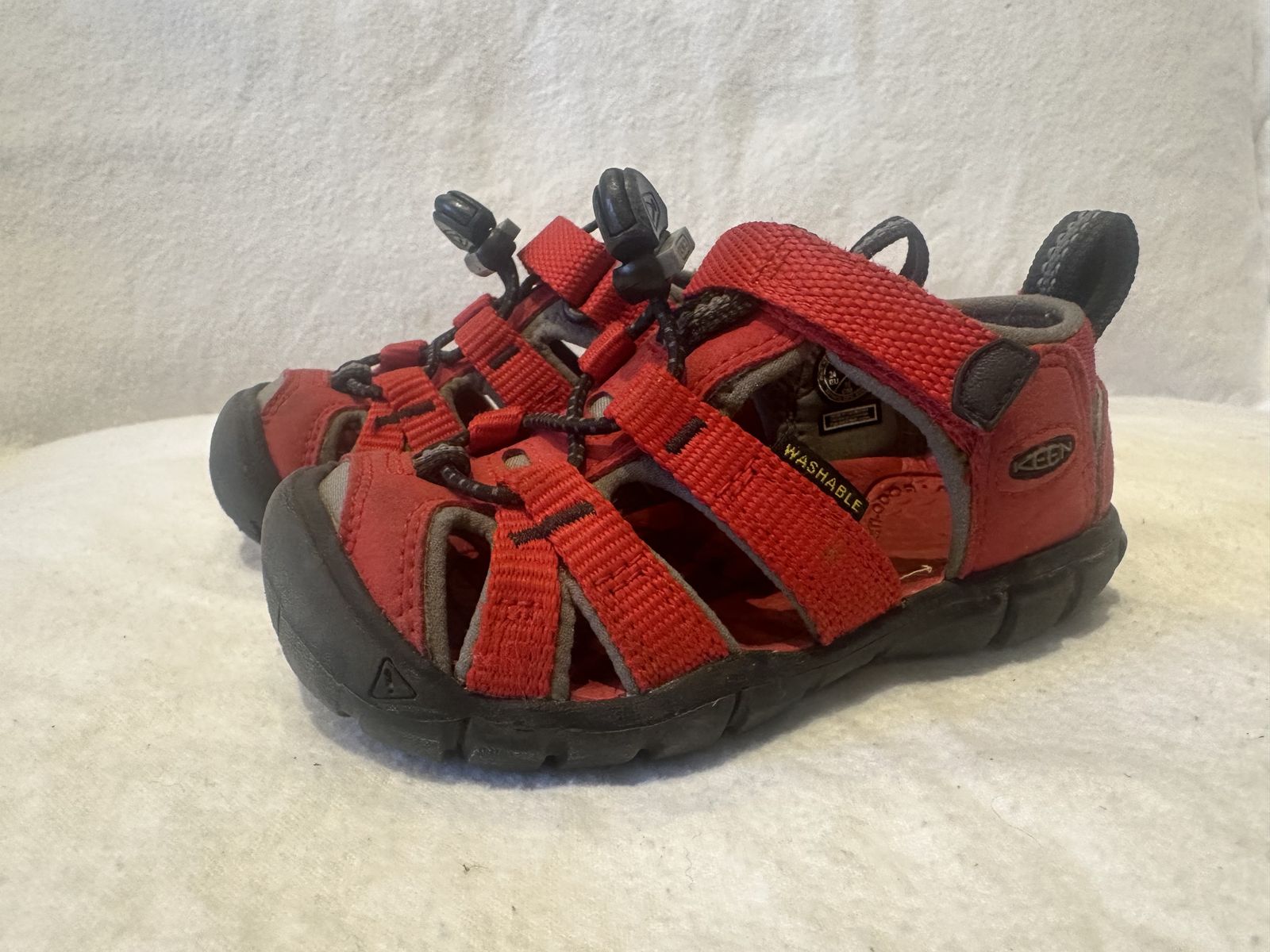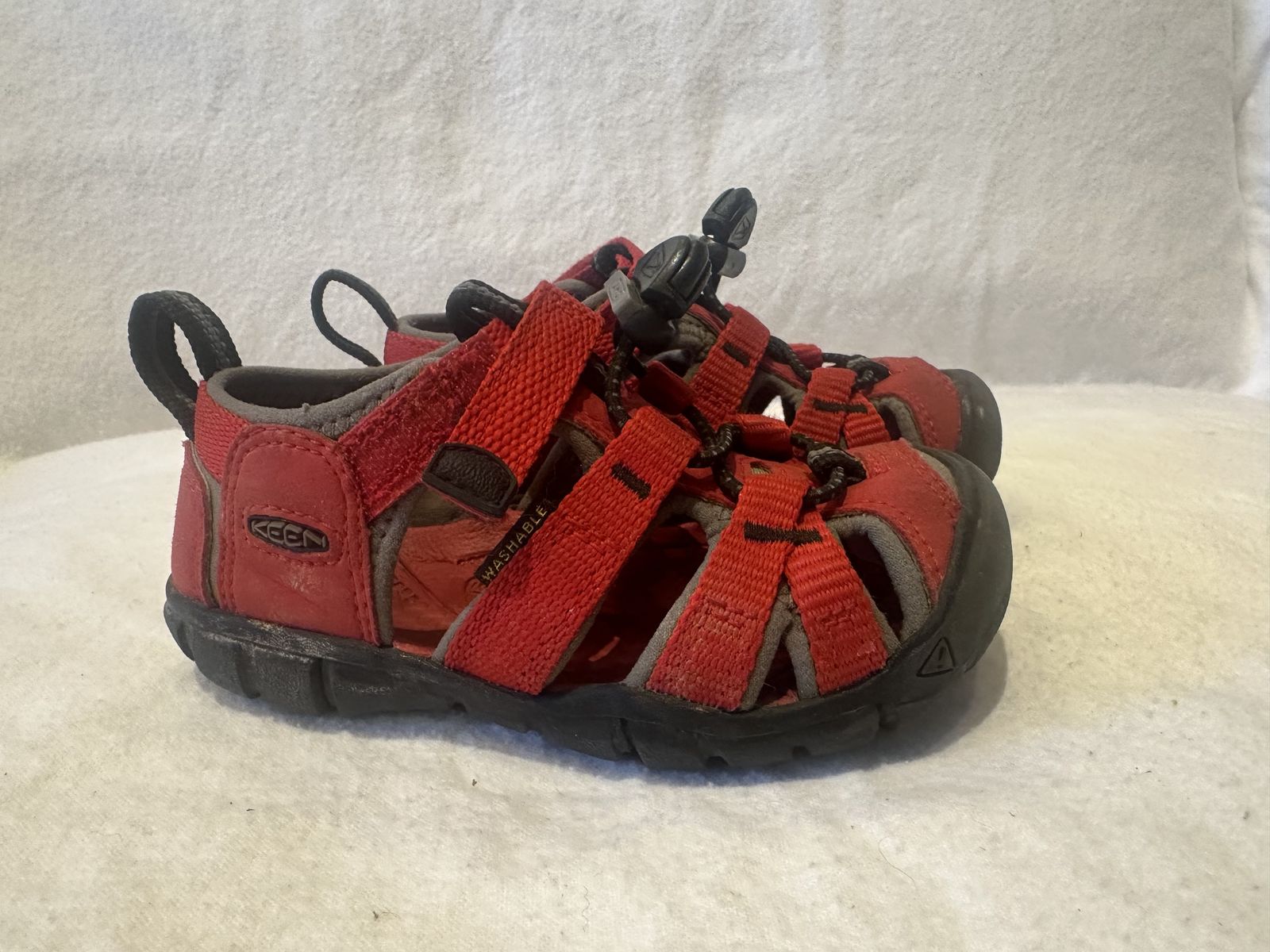 Keen toddler, size 8 red washable hiking sandals in excellent condition. See photos for details. I take cash or Venmo, but cash is preferred. Text is best. 801-201-4446. Check out my other ads for additional sizes and styles.
