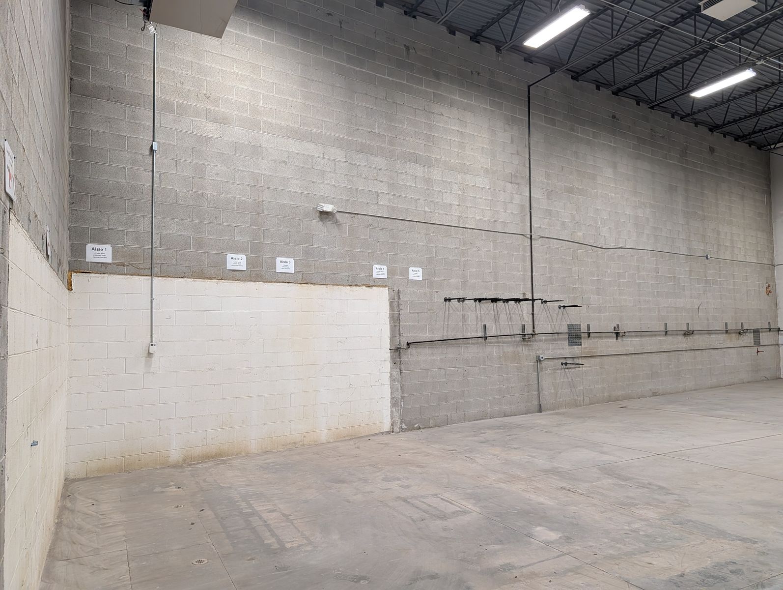 Ceiling clearance is 21' - you can go up. 14'x12' door. Not dock high.