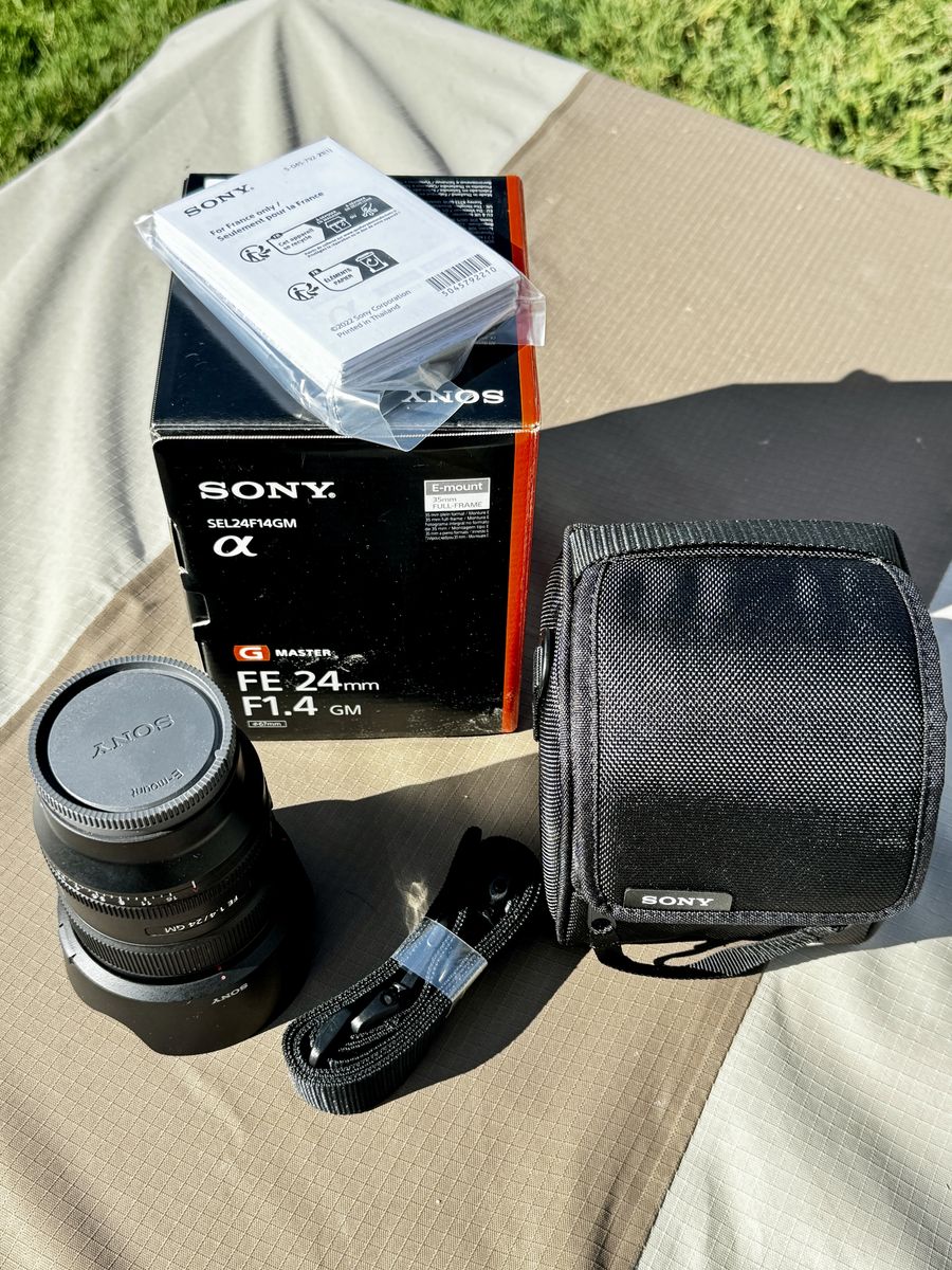 ApplePayOpen box item. Absolutely perfect condition. Super crisp portrait, landscape or astrophotography photos for Sony full frame e mount cameras. Model SEL24F14GM