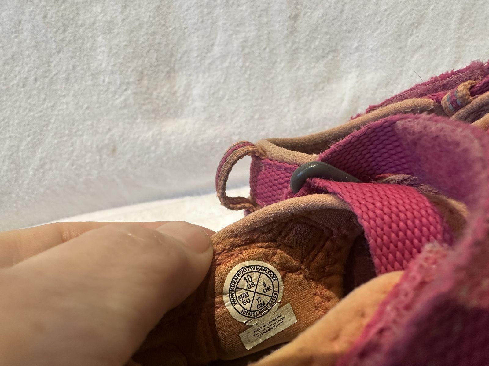 Keen toddler, size 10 hot pink with peach trim, washable, hiking sandals. These are in good condition, see photos for details. I take cash or Venmo, but cash is preferred. Text is best. 801-201-4446. Check out my other ads for additional sizes and styles.