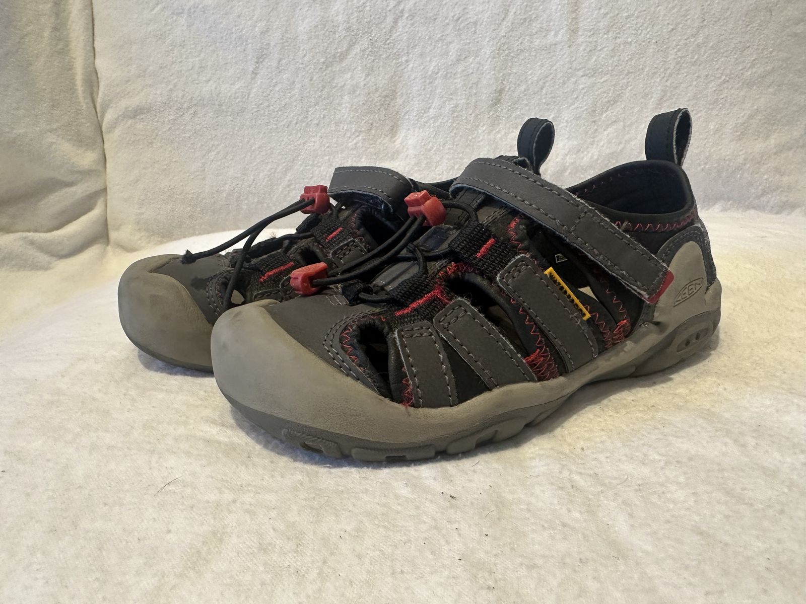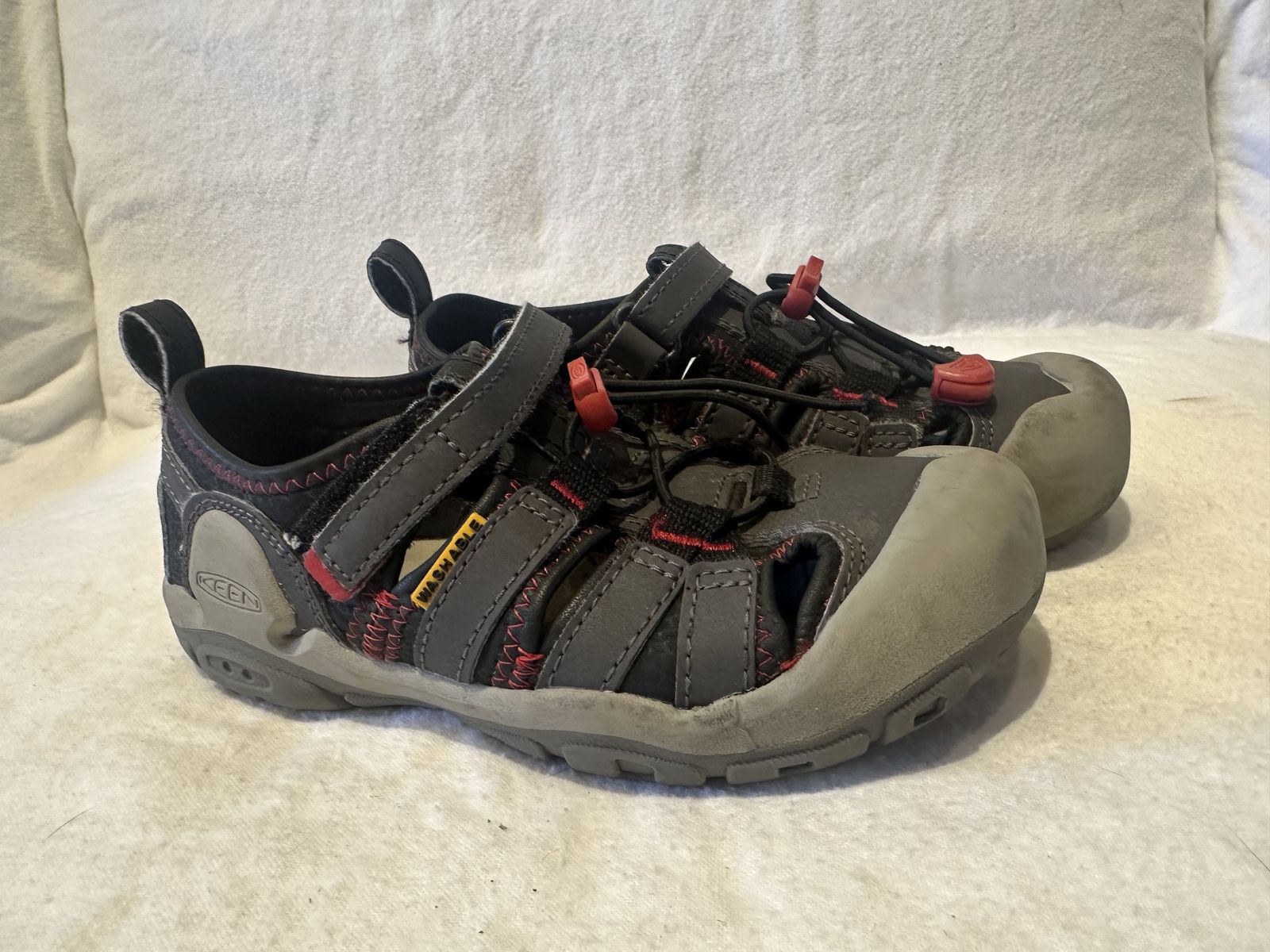 Keen toddler, size 13, black and gray with red trim, washable hiking sandals. These are in good condition, see photos for details. I take cash or Venmo, but cash is preferred. Text is best. 801-201-4446. Check out my other ads for additional sizes and styles.