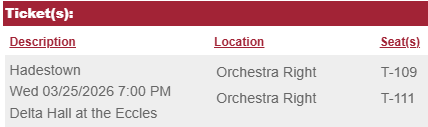 VenmoTwo tickets to be sold together only, 350 for the pair. Orchestra right, near the isle.