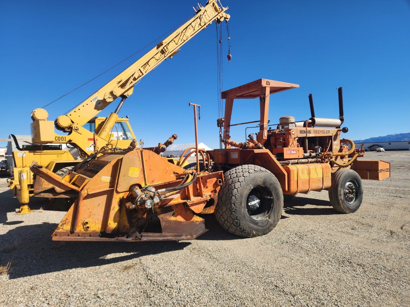 Up for sale is a 1985 Bomag Koehring MPH100R Wheel Soil Stabilizer Reclaimer. 1,716 hrs 70 in Soil Rotor, 6 in Cutting Depth. Powered by a Detroit diesel. Please call with any questions.