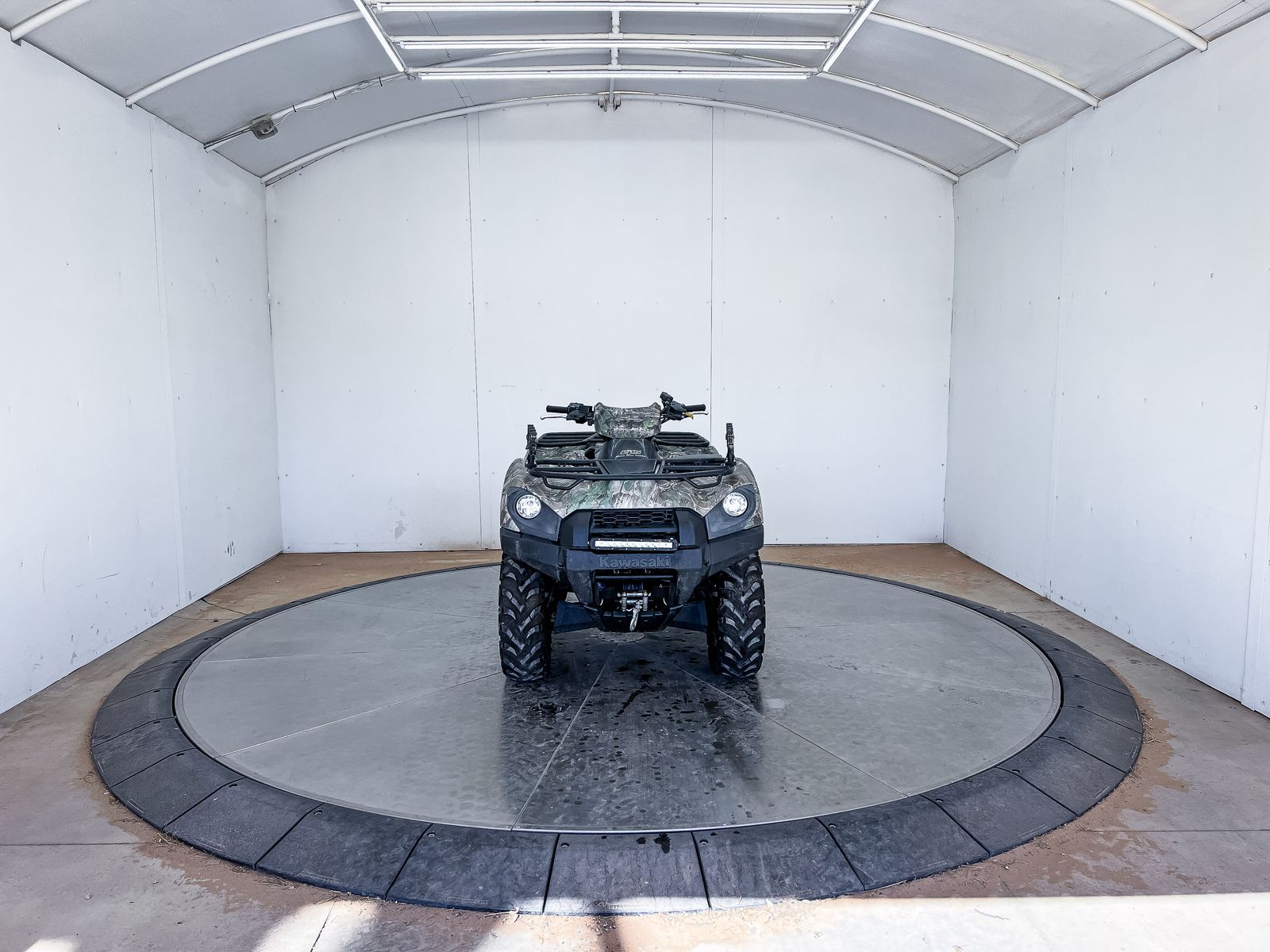 This machine comes equipped with a winch, light bar, and a gun rack.