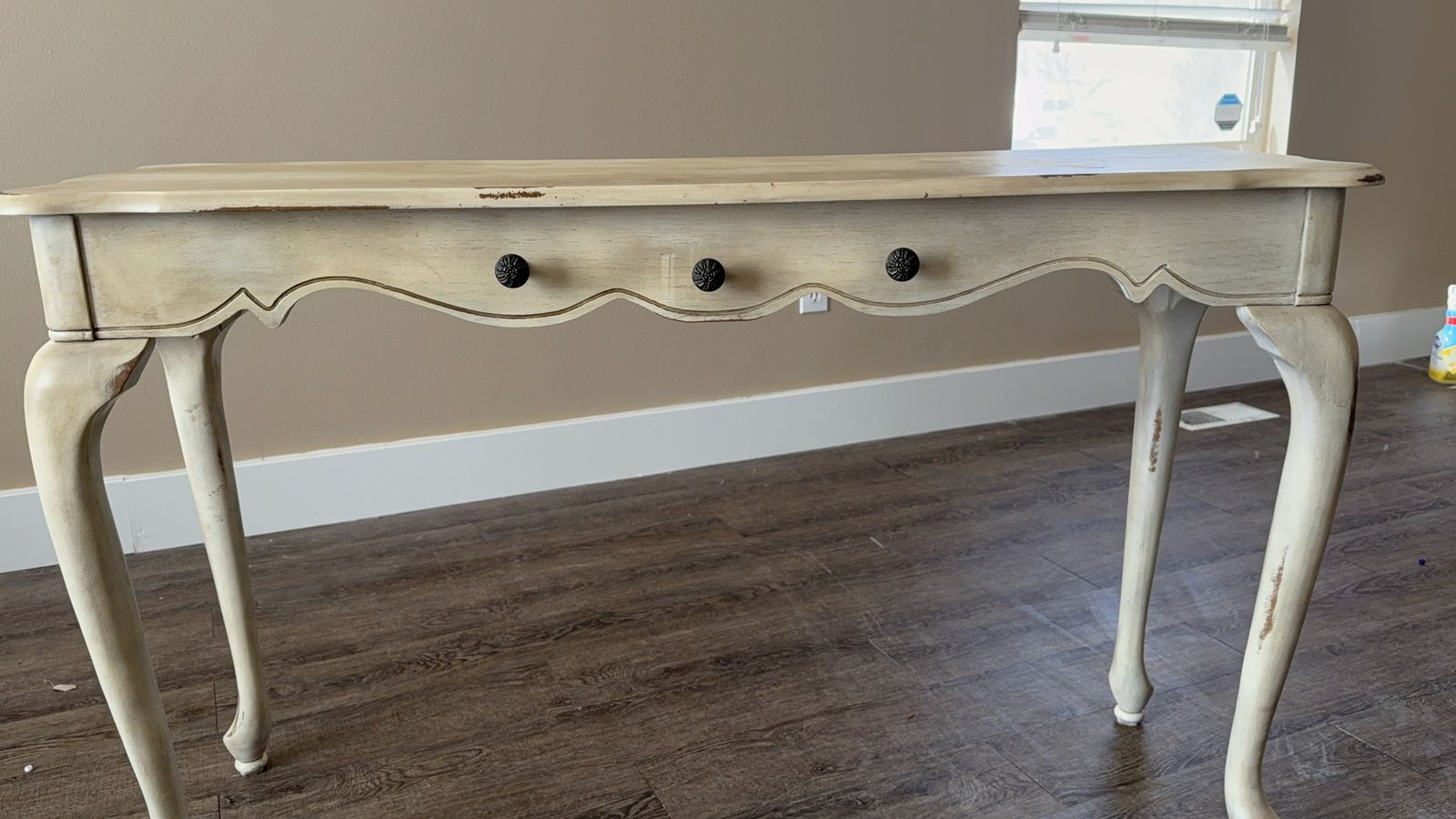 Very pretty entry table can be used as behind the couch table as well. We are moving and need it gone.