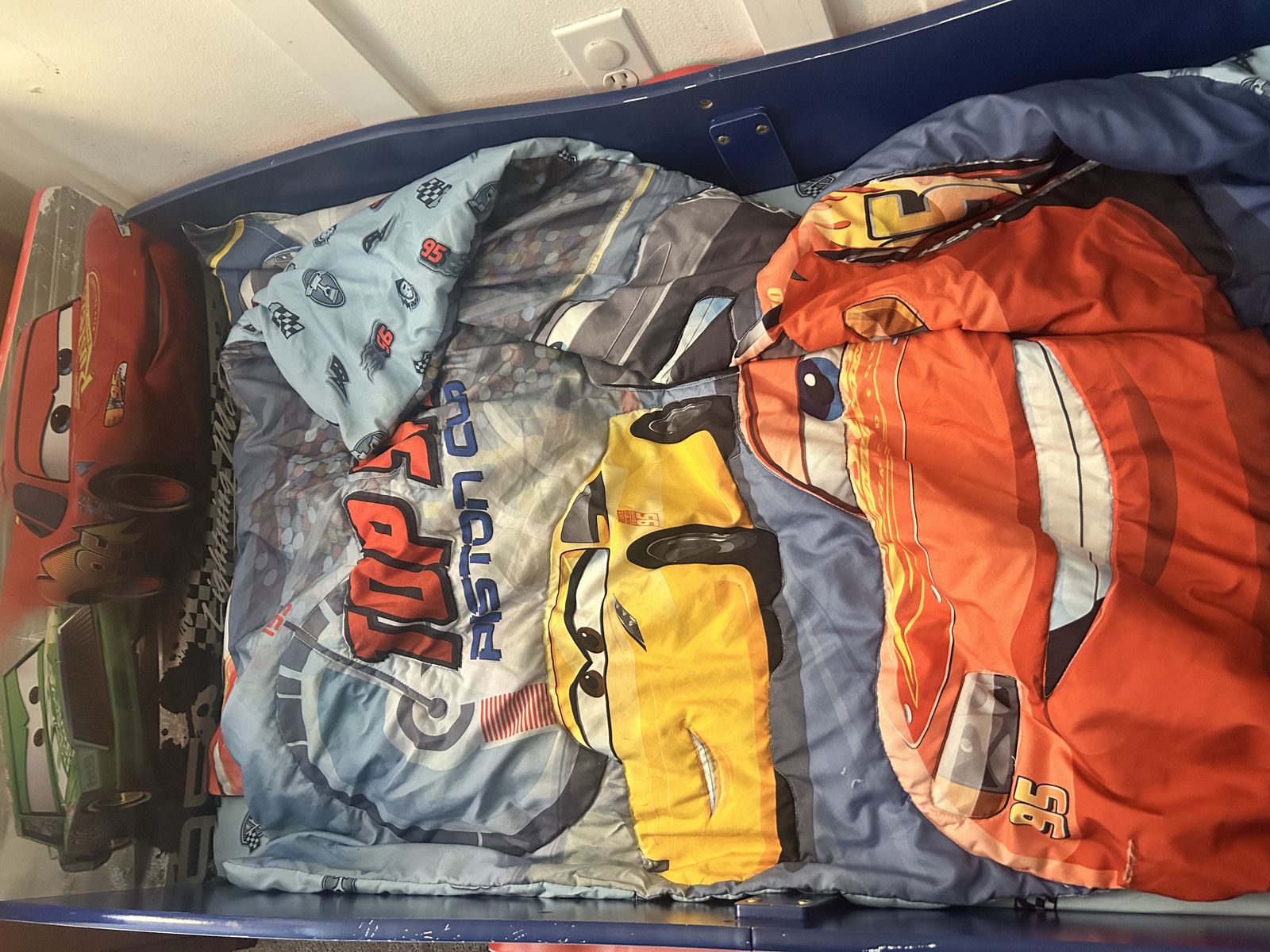 ApplePayCars toddler bed, with the frame mattress and comforter/sheets!