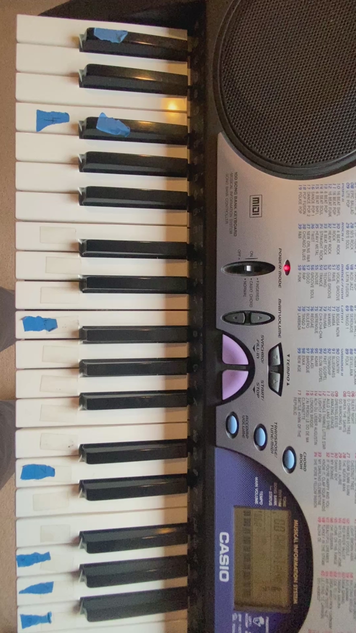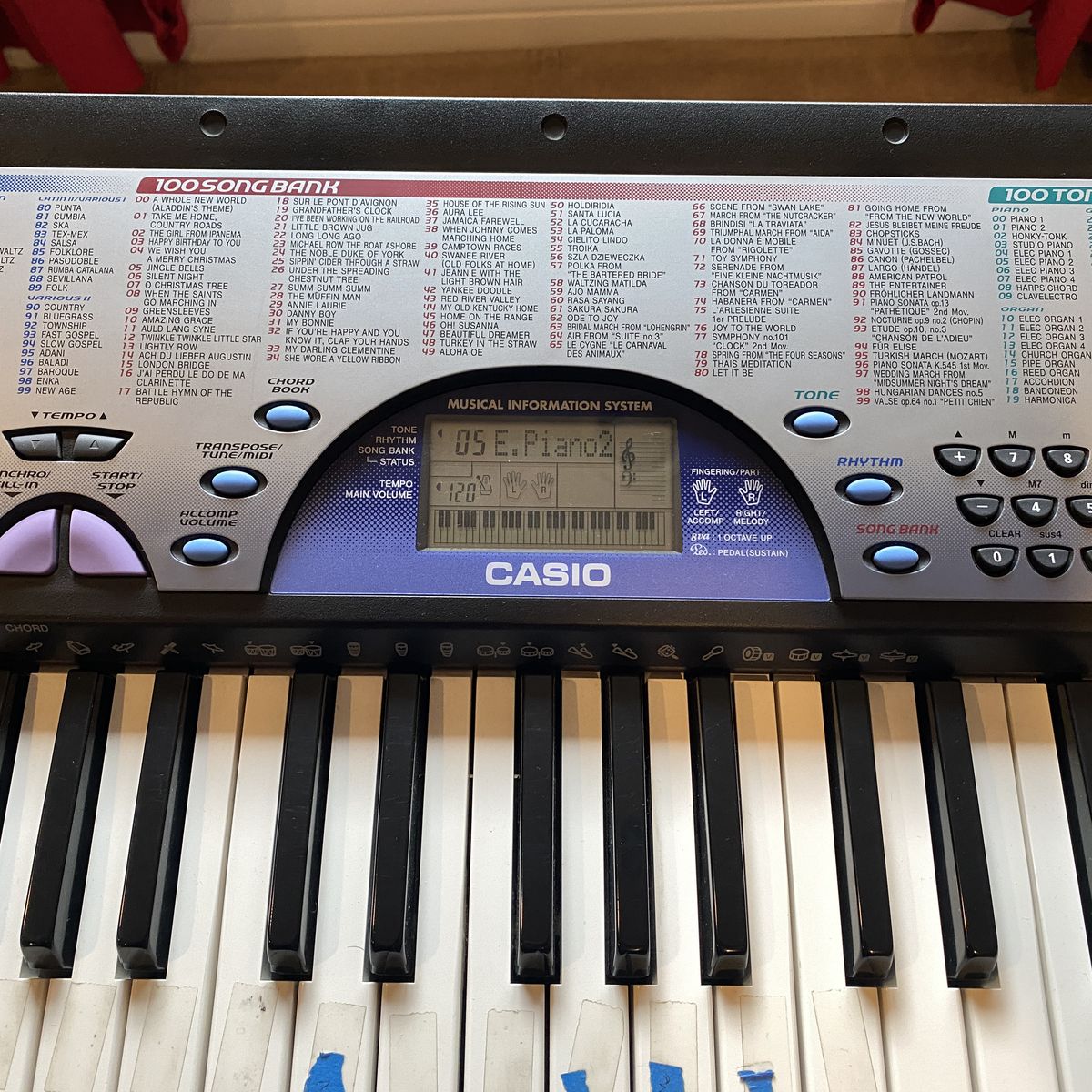 VenmoCasio digital keyboard with stand.We accidentally got rid of the charging cord (oops) so we’ve been using it with batteries instead.