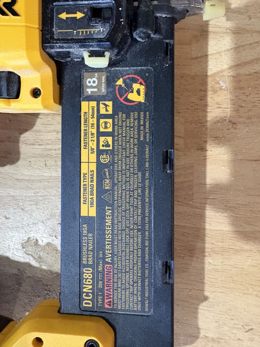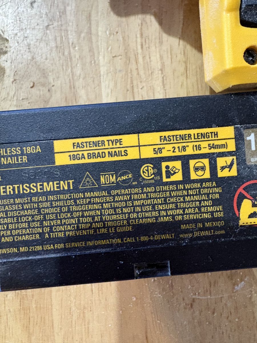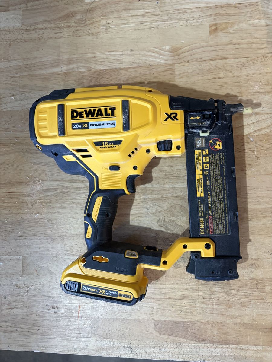 PayPalDeWalt 20V cordless complete kit including cordless brad nailer with 5/8" to 2 1/8" brad nail length capacity, 2 aH battery, charger, and canvas carrying case. Excellent condition and works well.
