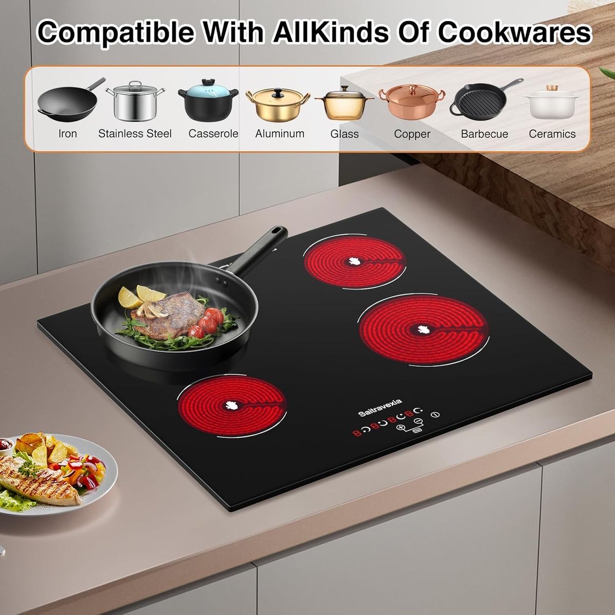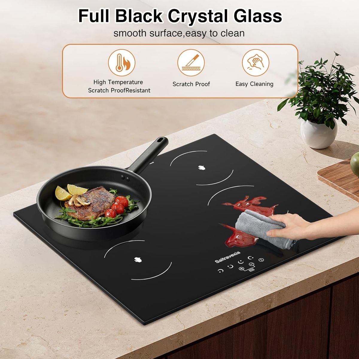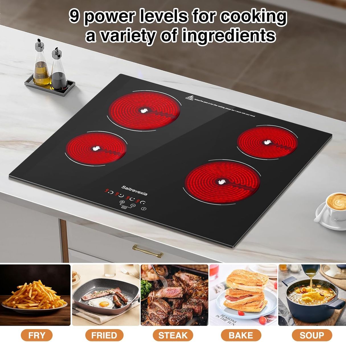 Saitravexia Electric Cooktop 24 Inch 4 Burners Built-in Electric Stove Top with Sensor Touch Control Child Safety Lock 9 Heating Power Settings, 6800 High Power, 220-240v Hard Wired New in the box, located in west valley city