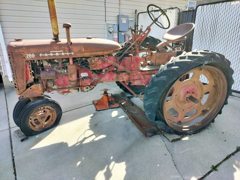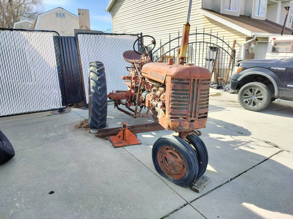 I'm not sure but I believe this is a 1956 Farmall tractor. I used it for yard art when I bought it but now I need the space for other things. The price includes the buyer to haul it off.