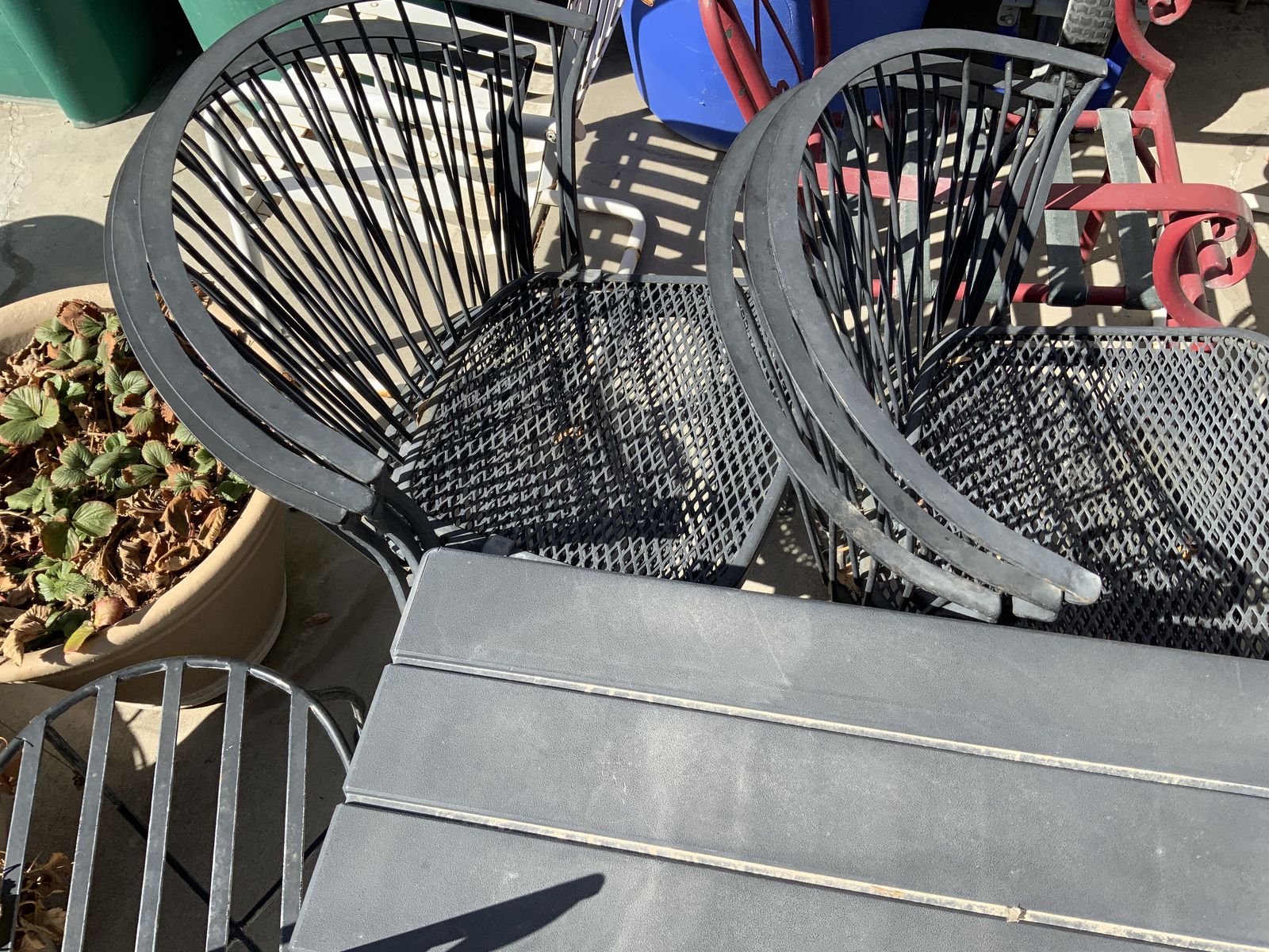 Costco metal garden chairs black in excellent condition $10. a chair