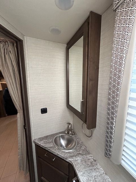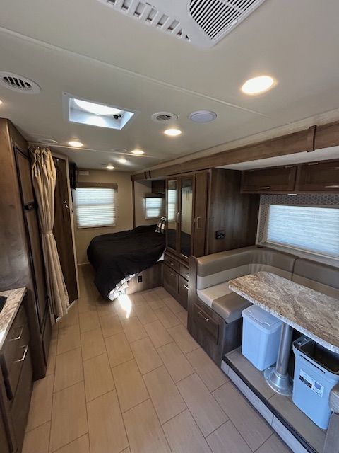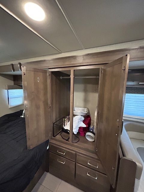 PURCHASED NEW AND USED TO TRAVEL ACROSS THE COUNTRY DURING COVID - THEN SOLD TO US. WE'VE USED IT A TOTAL OF 25 DAY. BEEN STORED IN COVERED AREA AND IS IN PRISTINE CONDUTION.
