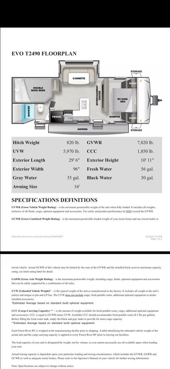 Selling our 2022 Forest River EVO T2490, lightly used and in great shape. This trailer has only been used 6 times and has been kept clean and well cared for.\
