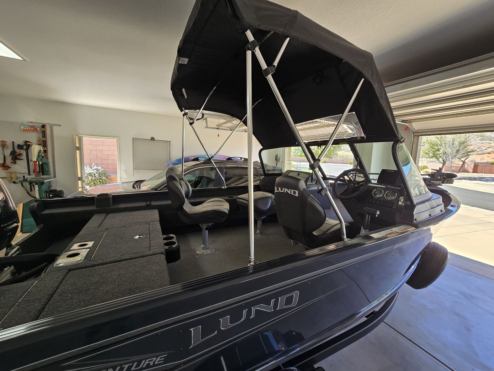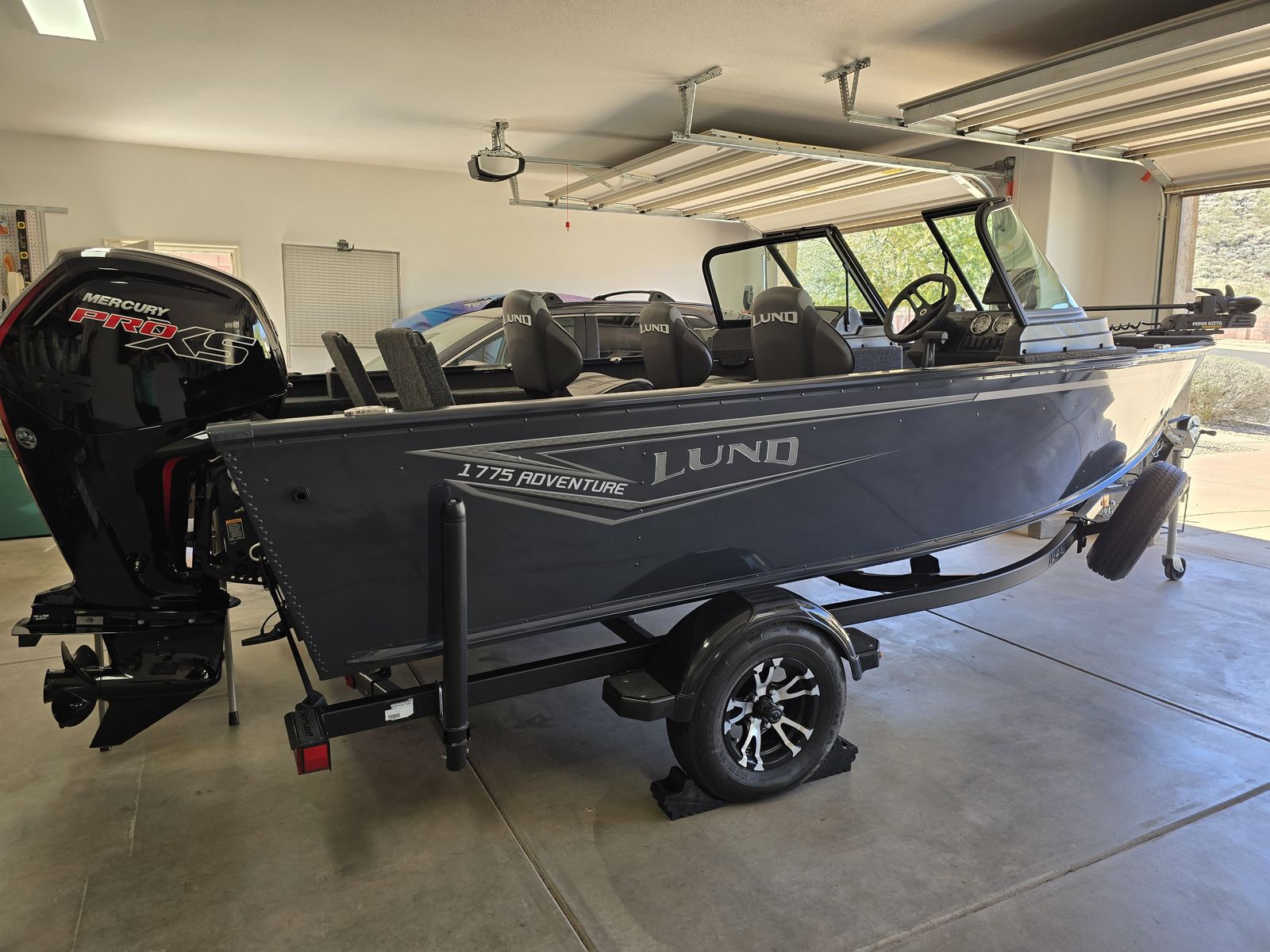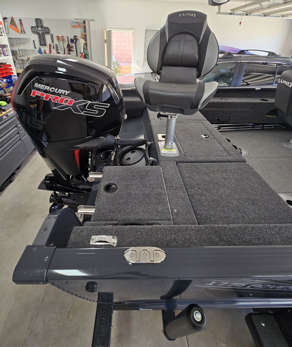 This is an almost new Lund 1775 Adventure in mint condition and kept in my garage. It was purchased new from the dealer April 2025 and is technically a 2024. We didn't have a chance to use it as much as we wanted and it was never used for fishing. These boats are now made fully from alluminum and built to last a lifetime. It has the top of the line Mercury ProXS 115Hp motor, Hummingbird Helix 7 Chirp MDI, Minnkota V2 70PD 24v with remote, 3 bank onboard battery charger, total of 3 swivel seats, the starboard seat also slides forward, ski pilon, Lund sport top, travel cover, Shoreland'r trailer with fold away tongue, load guides, and upgraded allow wheels with spare. The engine and gear oil were changed at the end of 2025 and we have not had the boat out this year yet. I will also include all of our boat accessories (100' anchor line, anchor, life jackets, docking rope, etc.)
