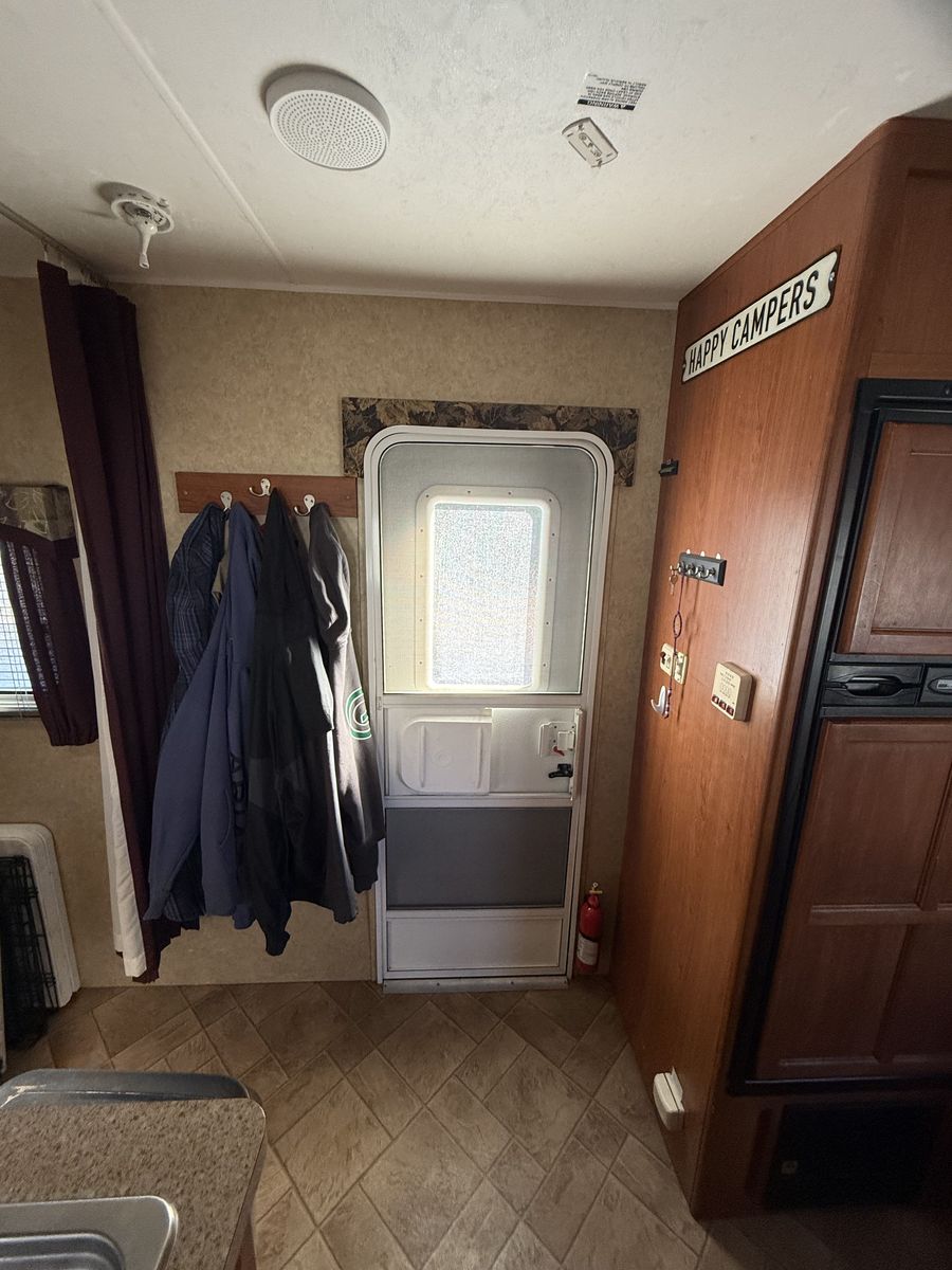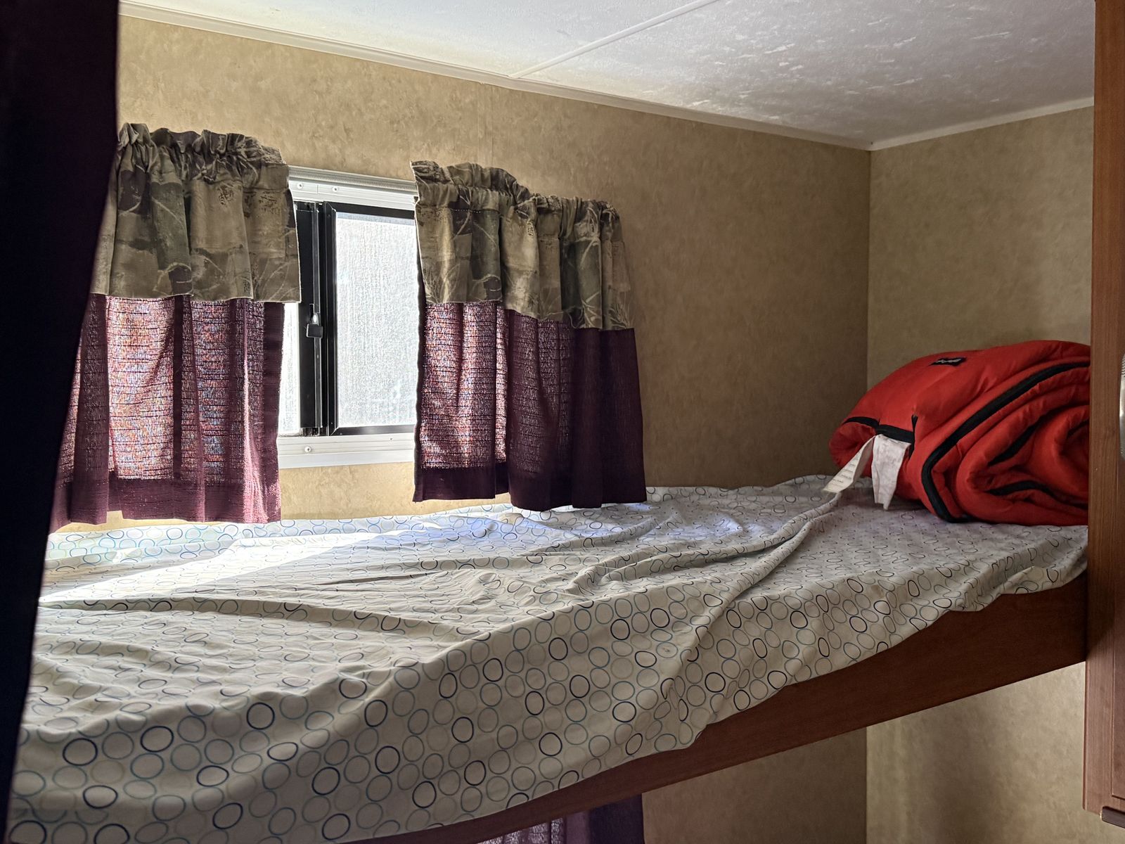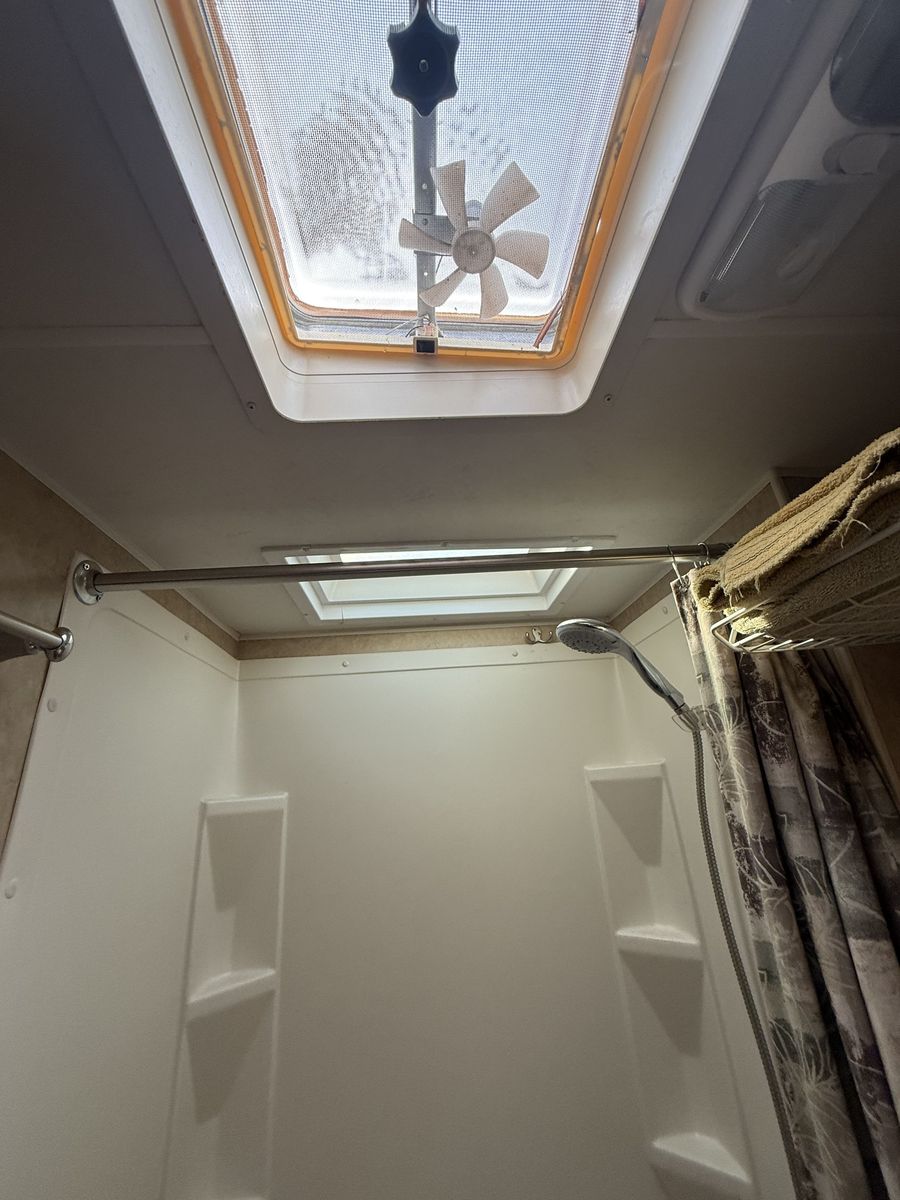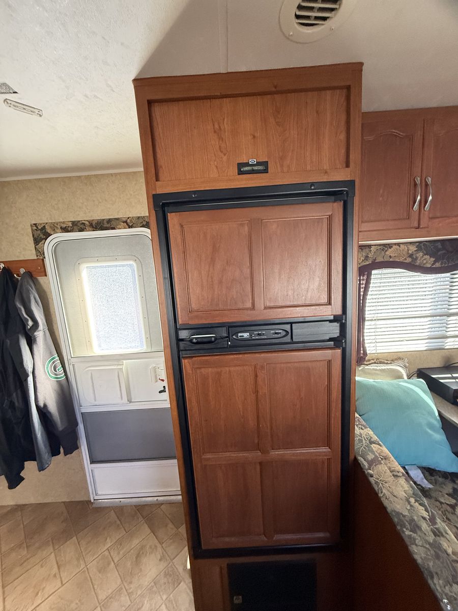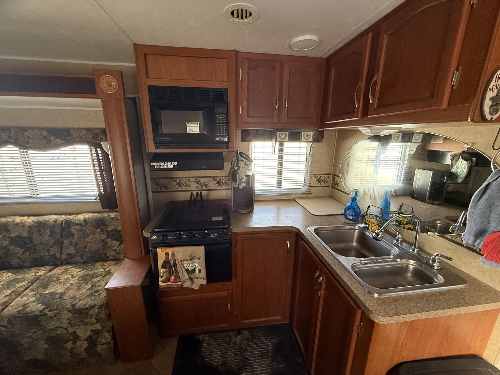 Great trailer, we have loved it! Front queen master bedroom, rear bunkhouse. Lower bunk is a double, upper bunk single. Couch and dinnette can also convert to beds. All appliances work correctly. Booth style dinette, couch in slide across from dinette. 3 burner range and microwave, Elec/LP fridge/freezer combo. Elec/LP hot water heater, 45 gal freshwater tank, tub/shower with skylight, 2 top air vents, 30 Amp service, dual batteries, 2 small tv's, 16' awning, front pass through storage, storage under queen bed, and storage under double bunk accessible from exterior, weight distribution hitch included, new axles and tires 2 years ago, new queen 8” memory foam mattress 2 years ago, 5350 dry weight, 800 lb hitch weight.