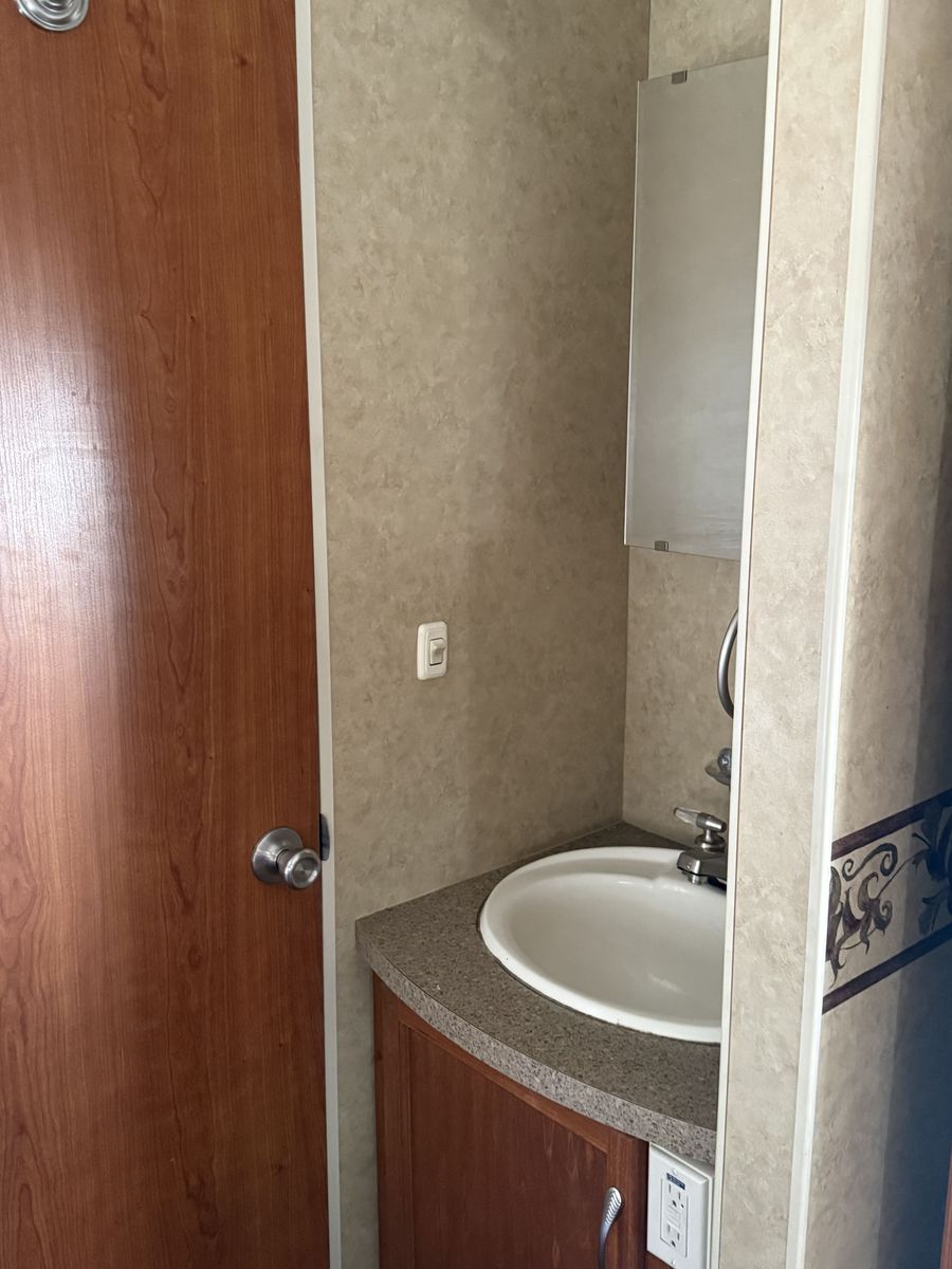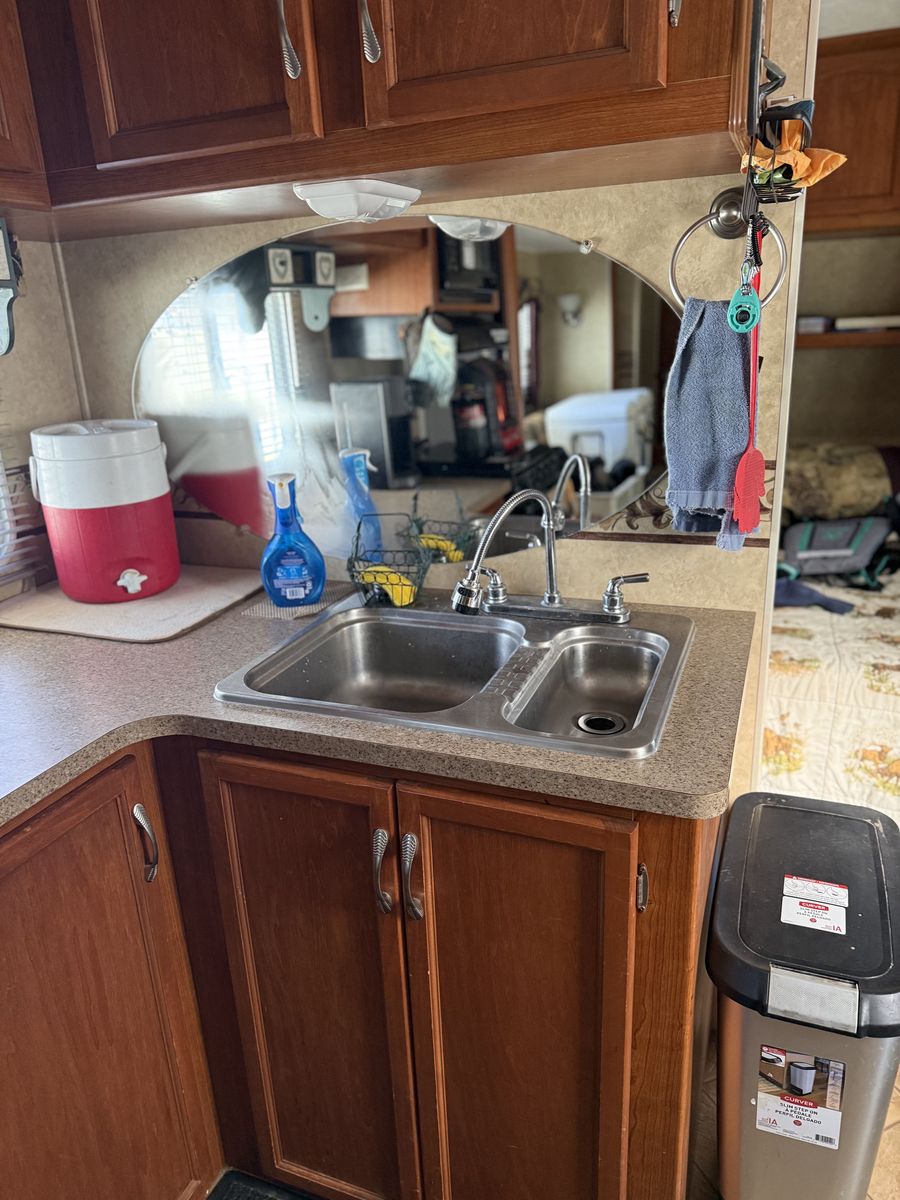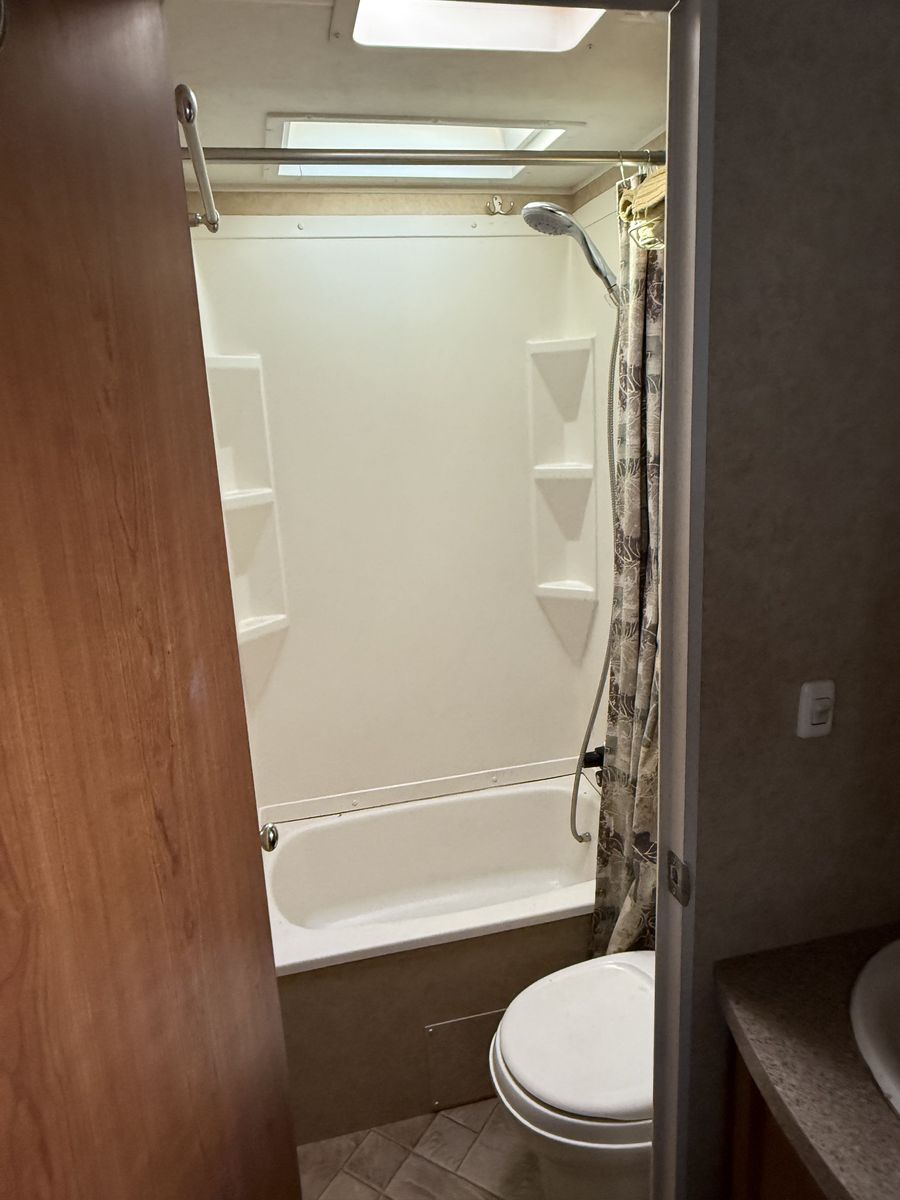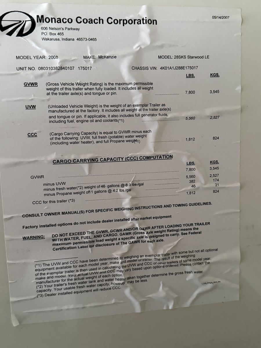 Great trailer, we have loved it! Front queen master bedroom, rear bunkhouse. Lower bunk is a double, upper bunk single. Couch and dinnette can also convert to beds. All appliances work correctly. Booth style dinette, couch in slide across from dinette. 3 burner range and microwave, Elec/LP fridge/freezer combo. Elec/LP hot water heater, 45 gal freshwater tank, tub/shower with skylight, 2 top air vents, 30 Amp service, dual batteries, 2 small tv's, 16' awning, front pass through storage, storage under queen bed, and storage under double bunk accessible from exterior, weight distribution hitch included, new axles and tires 2 years ago, new queen 8” memory foam mattress 2 years ago, 5350 dry weight, 800 lb hitch weight.