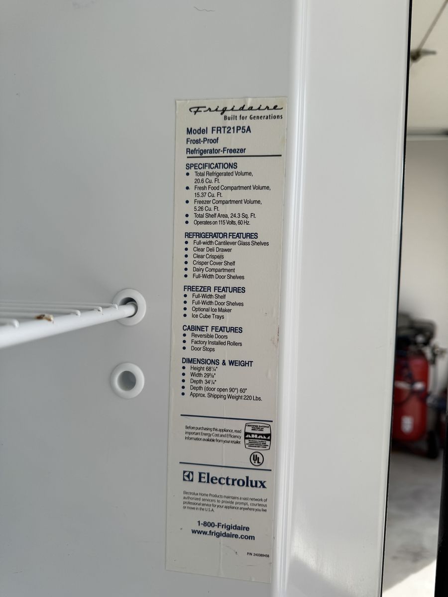 VenmoFrigidaire, top freezer. H 68 1/4", W 29 5/8", D 34 1/4". Deli drawer, adjustable shelves. doors can be reversed to open from left to right. Great condition, very clean, runs quietly. Use and care manual included.