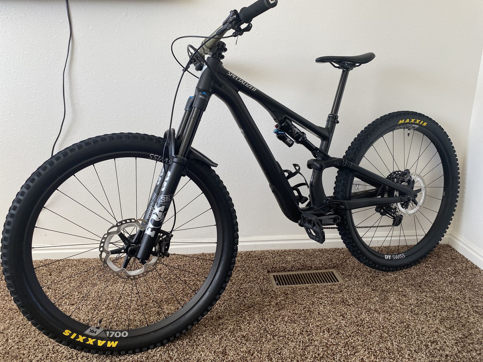 VenmoCustom built Specialized Stumpjumper S15. Aluminum frame set. Fox performance 36mm 160mm travel front fork. Fox performance Float X 145mm rear shock. Fox transfer performance seat post with 150mm travel. DT Swiss front and rear aluminum 29” wheel set with 350 hubs and upgraded 54tooth ratchet. Maxxis Minion DHF 2.5 front and rear tires. Renthal V3 35mm bar and stem. ODI grips. Shimano XT brakes with 200mm front and rear rotors. Shimano XT drive train with 165mm cranks. SDG saddle and pedals.