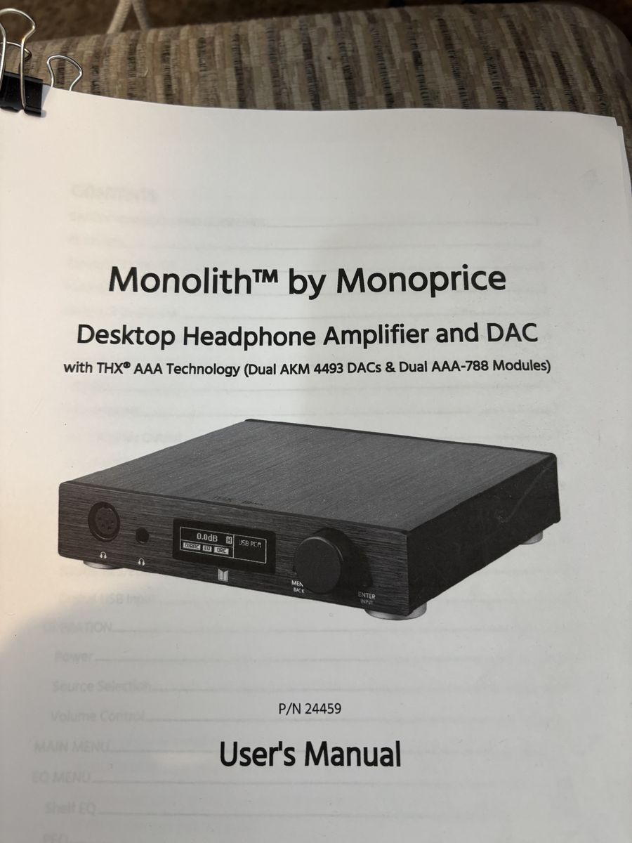 Monolith headphone amp. THX AAA Tech. Dual AKM 4493 Dac's, Dual AAA 788 modules. LNIB. with less than 10 hrs. on these. Very highly rated. Retails for $599 newest version sales for $750. I am asking $300. I will sale for $600 for both.
