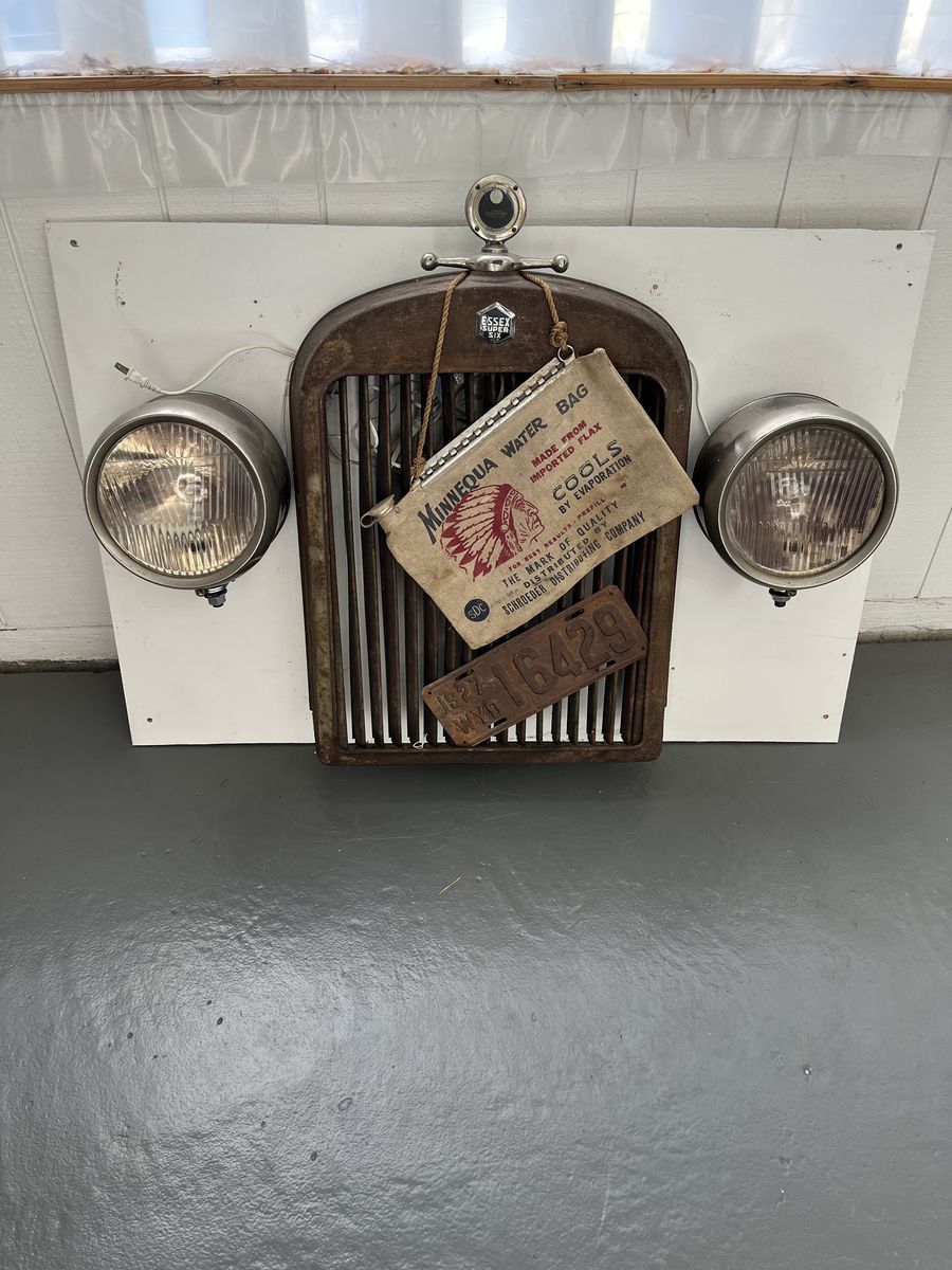 I was told when I bought this that the grill was a real 27 Essex. I have never researched it to find out if it is or isn’t it’s been hanging on my garage wall for 10 to 15 years.. it is mounted on a piece of plyboard . We’ll make a great display piece.. all you need to do is come And get it. Take it home and screw it to the wall and plug the lights in they do work.
