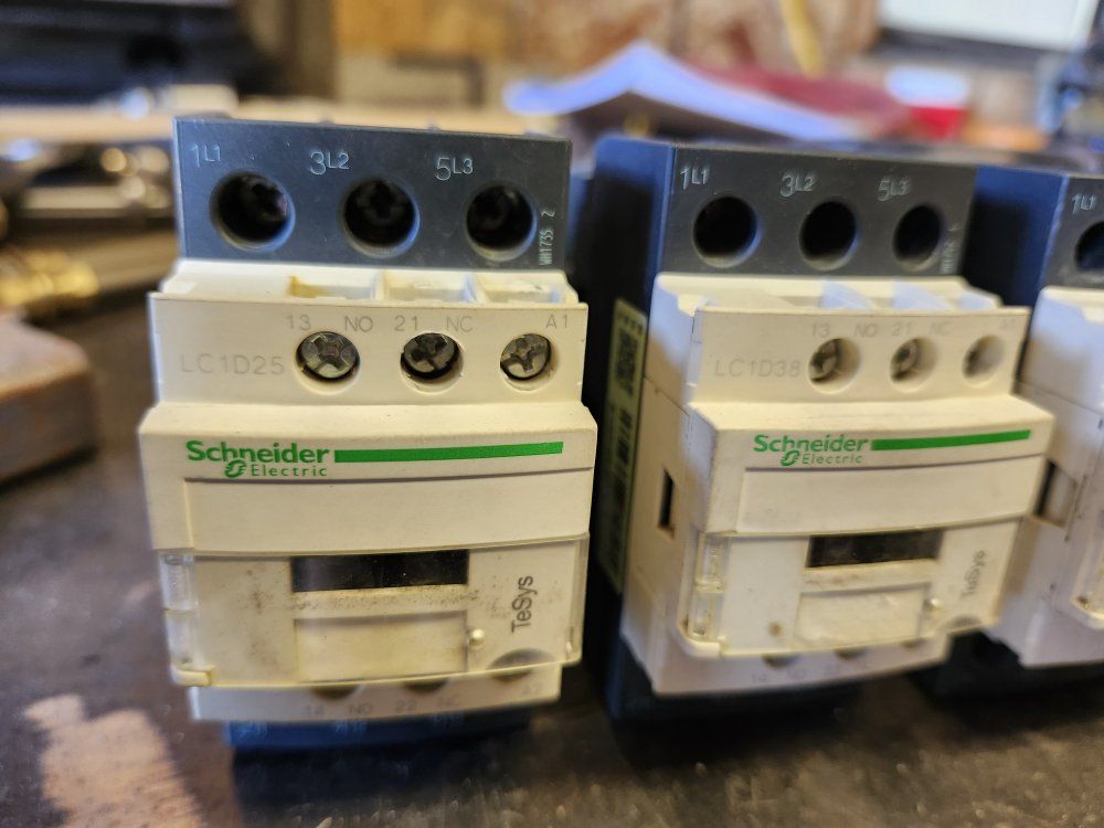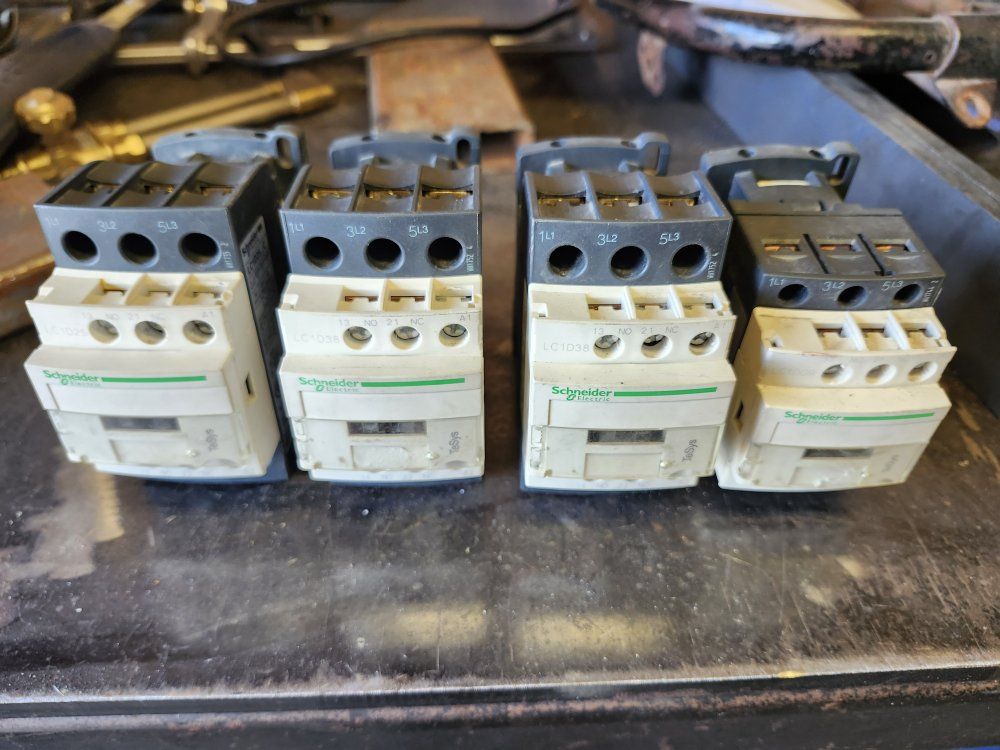 VenmoThese are used contactors, taken out of a working air compressor that was dropped when relocating and the compressor housing broke. There are 2 Schneider LC1D38 contactors $50 each, 1 LC1D25 contactor $30, and 1 LC1D09 $25. Make an offer, especially is you want them all I'll make a good deal on them. Also have 4 Jingda RT18-32MX 32 amp fuse holders $20 for all 4