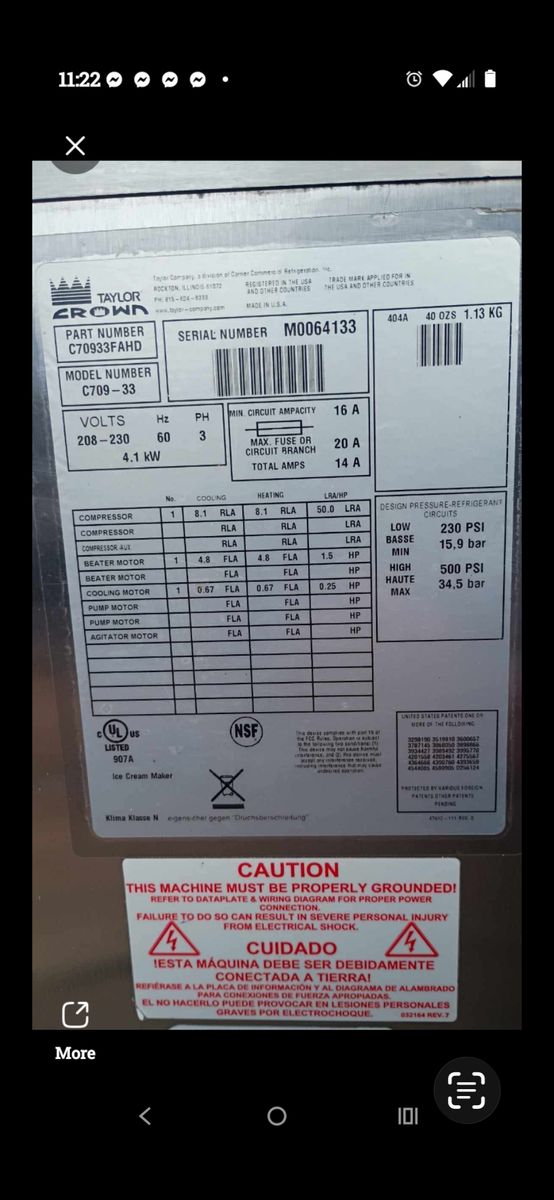 VenmoTaylor crown soft serve ice cream machine for sale model C7– 0 9–33. Commercial grade machine is great work in great working condition and makes excellent soft serve. Just serviced. Used but well maintained. Perfect for restaurants, snack bars, food trucks, fairs, or concession stand.
