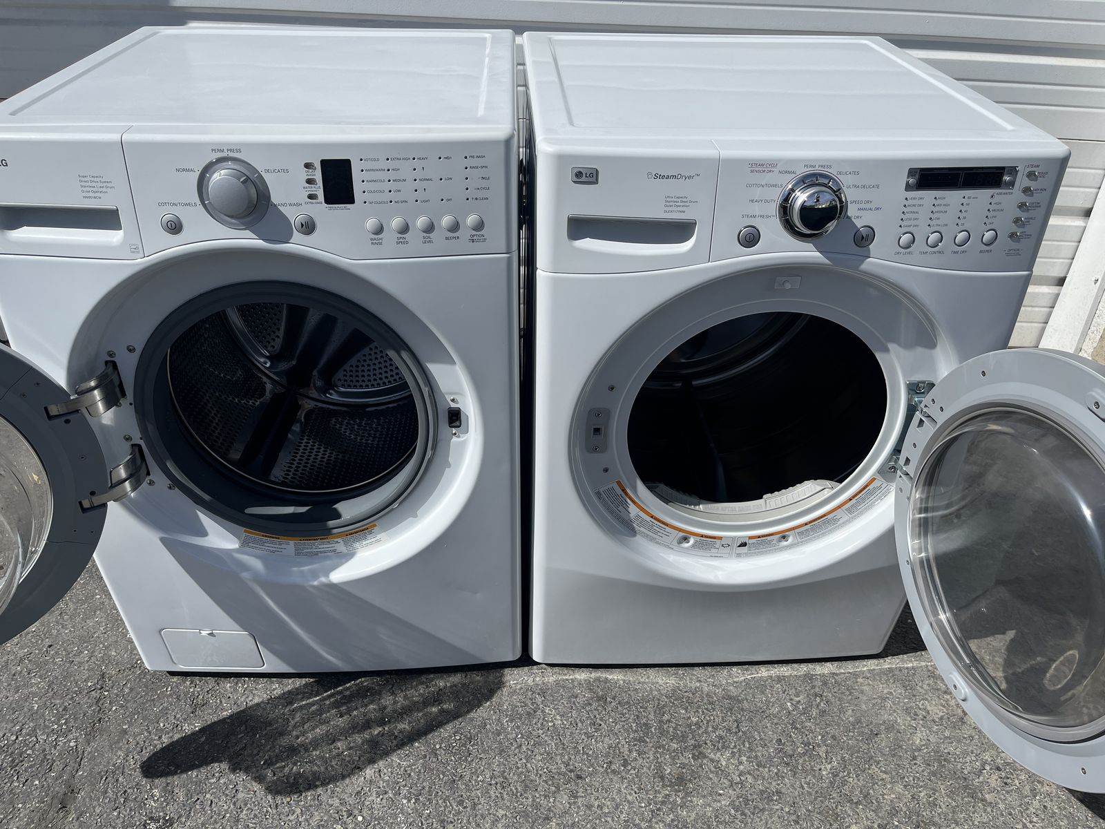 Hello I have a nice and clean LG front loader electric set for sale both of this machines are in good condition. And work with no problems the dryer has wrinkle free and end of cycle and the washer sanitize and stain cycle as well pedestals are included on the price so if youʼre looking for a nice and clean front loader electric set feel free to call or txt with any questions (801)695-0314 I can deliver for free on the SLC area,thanks for looking.