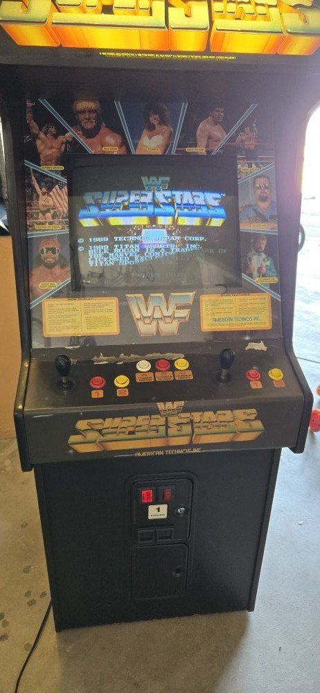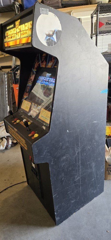 cabinet is not on great shape but game works. includes original manual, no keys for back box