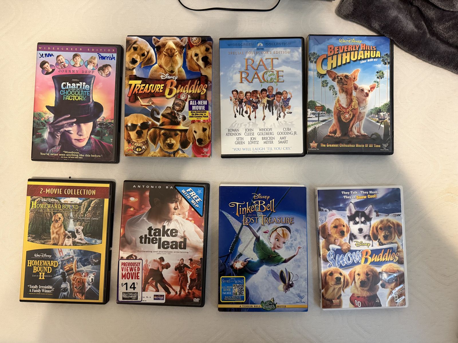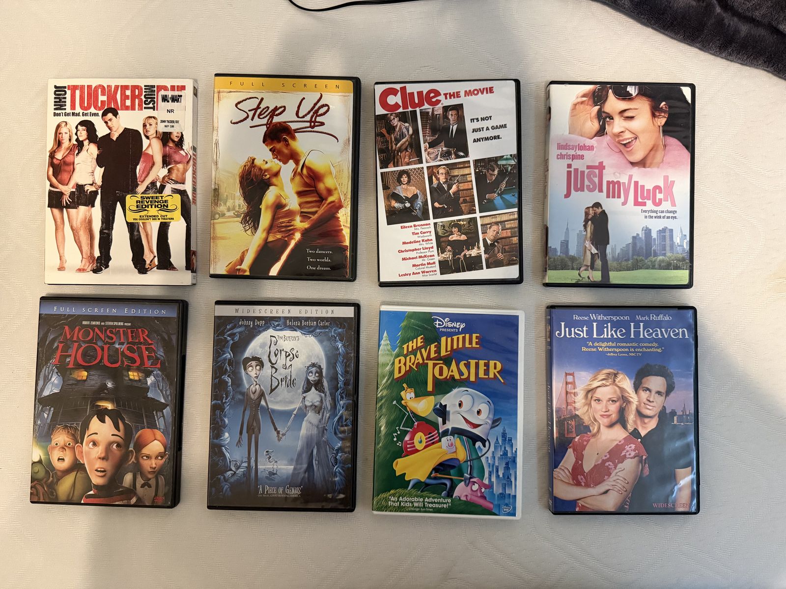 DVDs: movies are $5 shows are $10 Blue ray: movies are $10, shows are $15