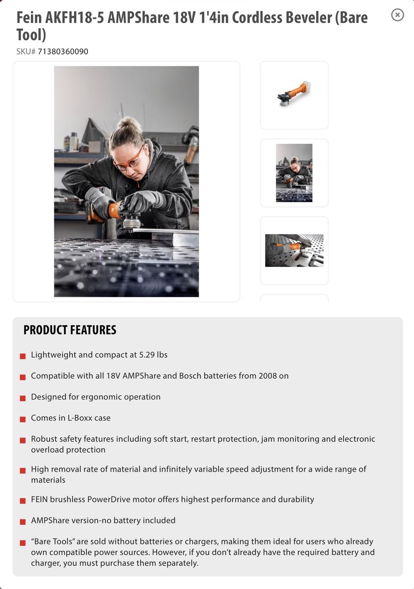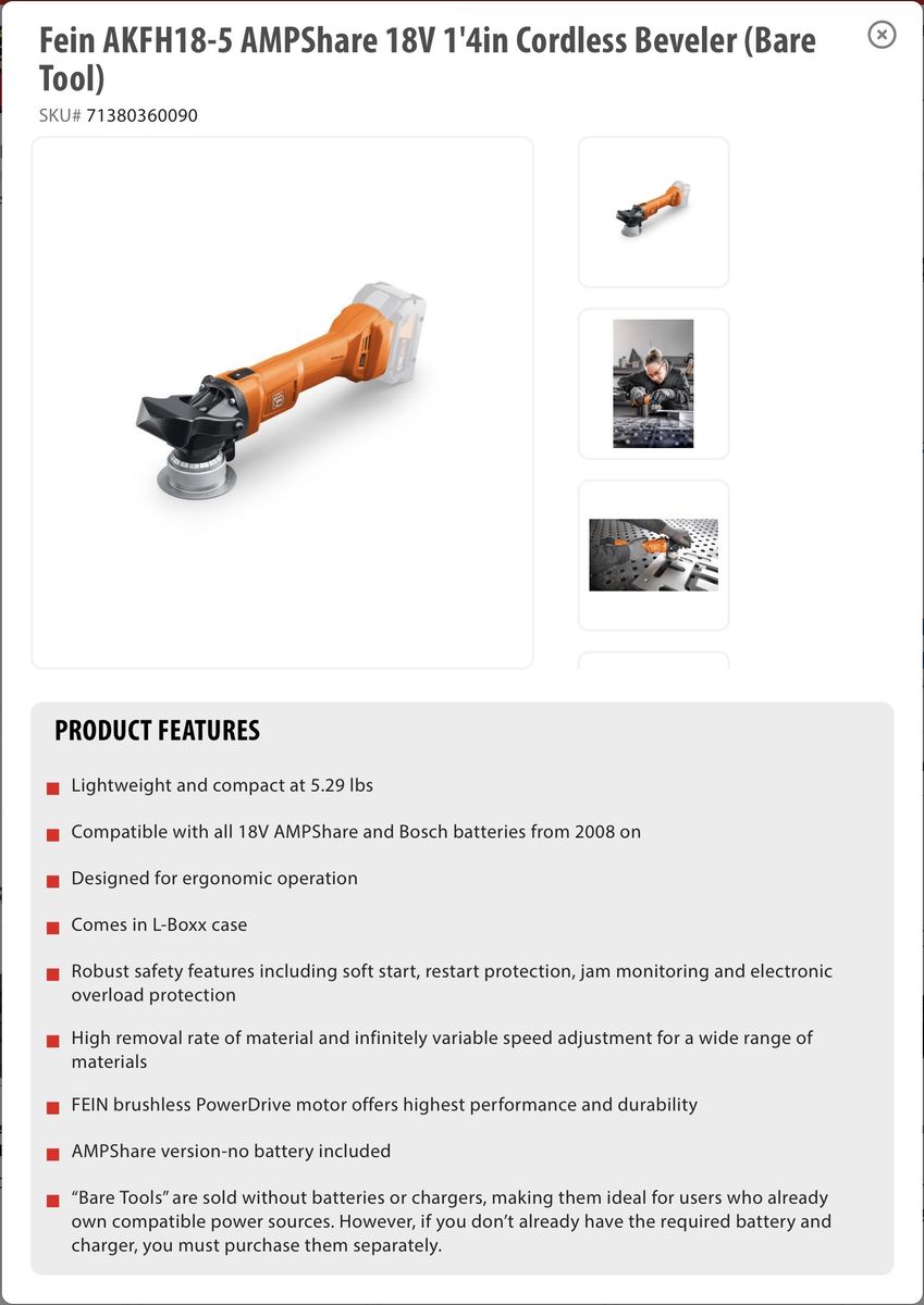 ZelleFein AKFH18-5 AMPShare 18V 1'4in Cordless Beveler (Bare Tool