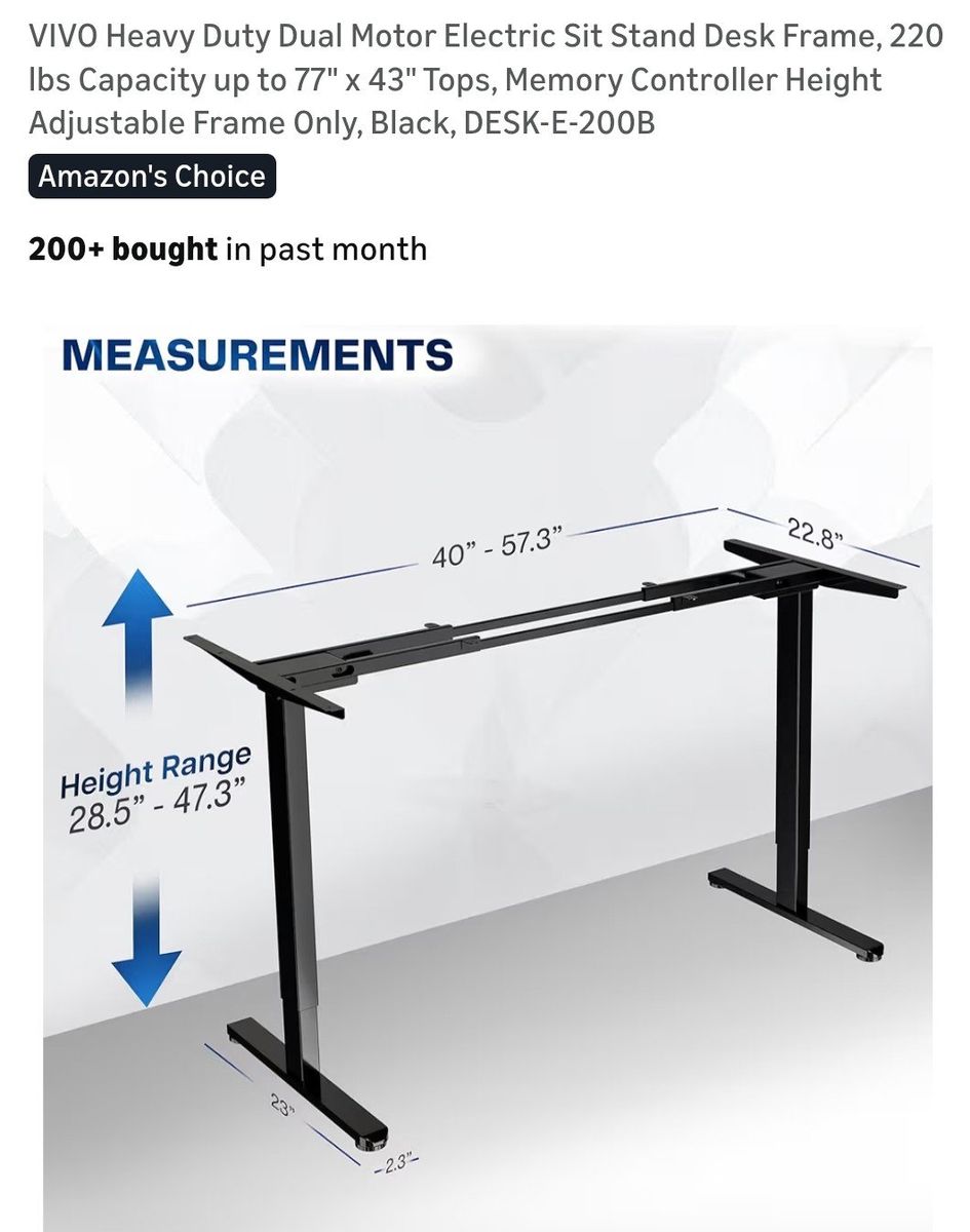 V I V O Heavy duty motor electric sit standdesk frame 220 lbs. I have 2 asking $120 each