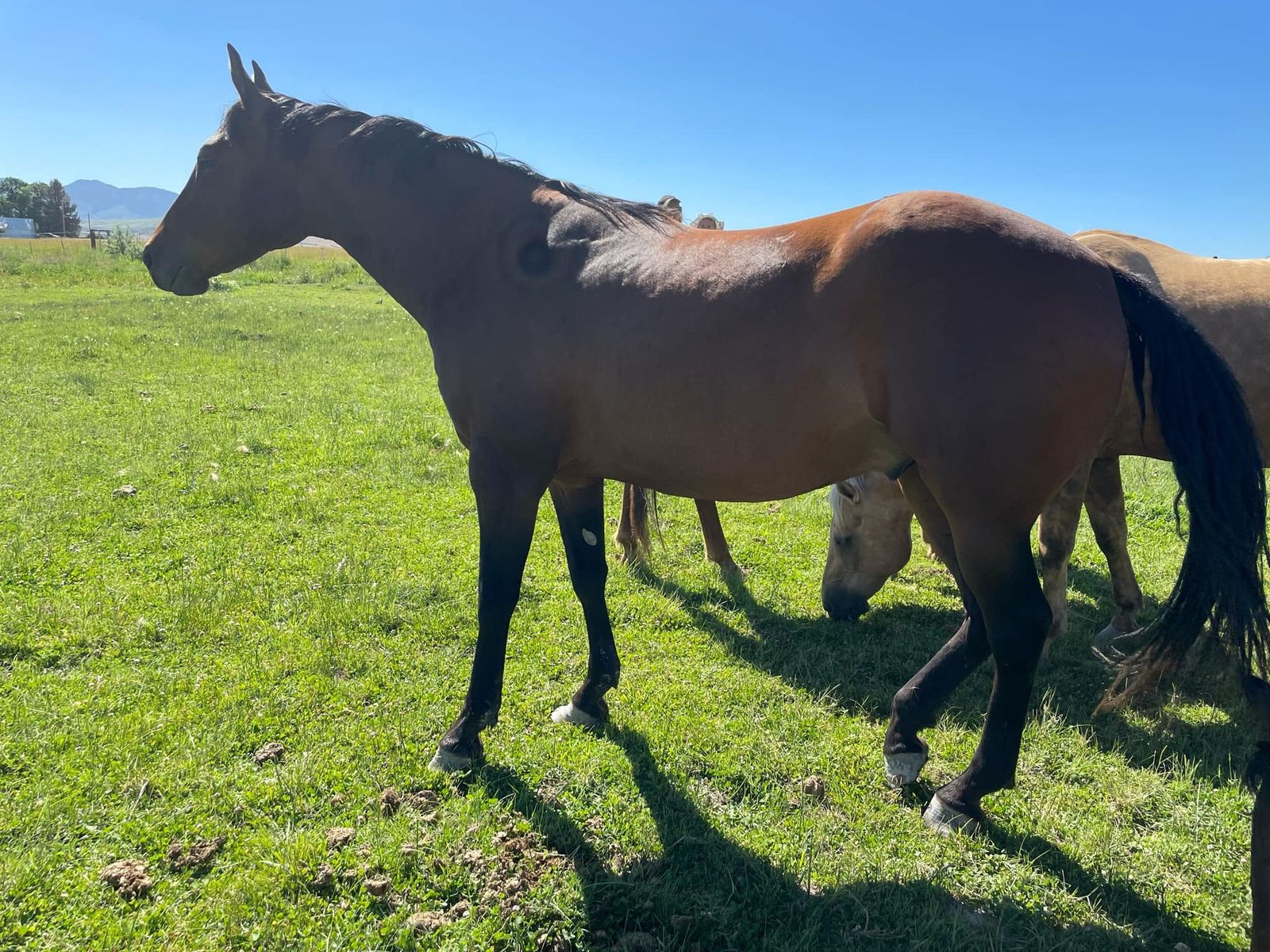 Hollis is built and beautiful! He has been ridden in the hills, for herding and rounding up cattle. He loads well. He has been shod.