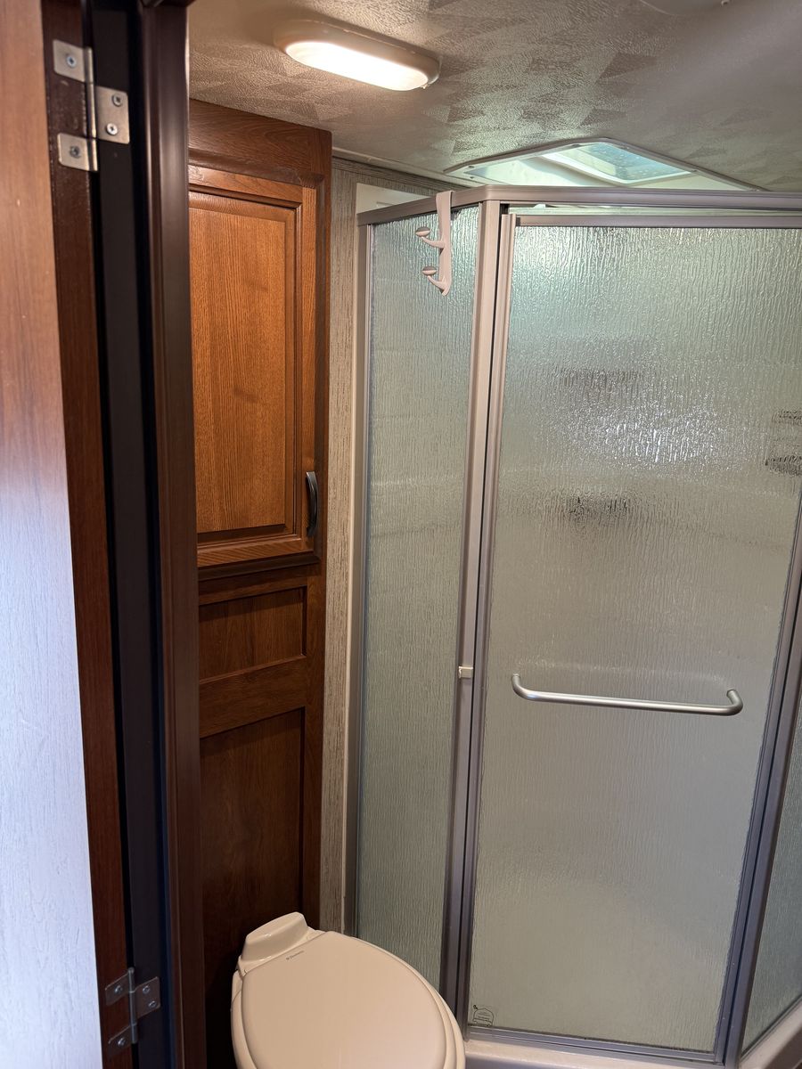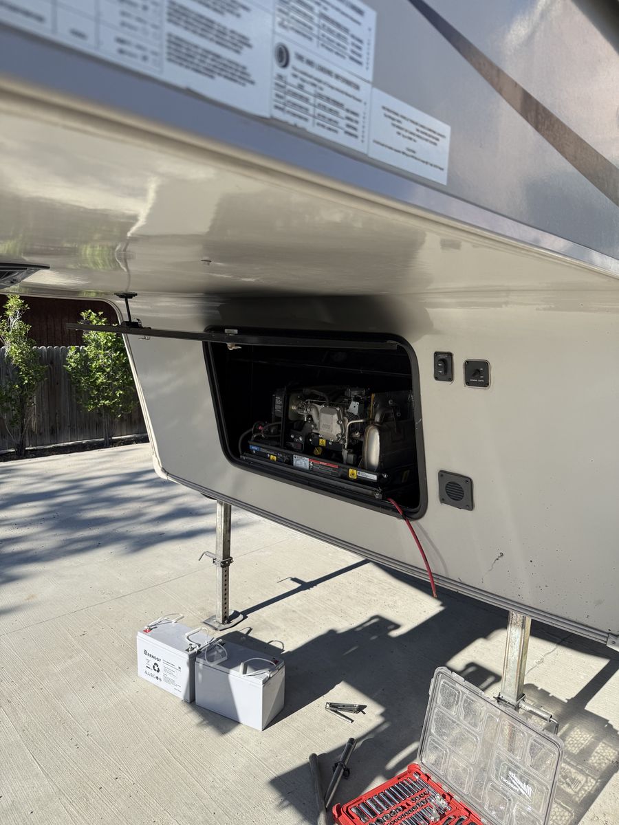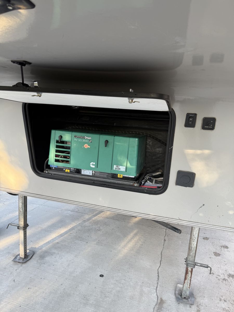 We have added an onboard Cummins generator and auto transfer switch. We also added 6 deep cycle batteries. Other than that it’s got the basic amenities.