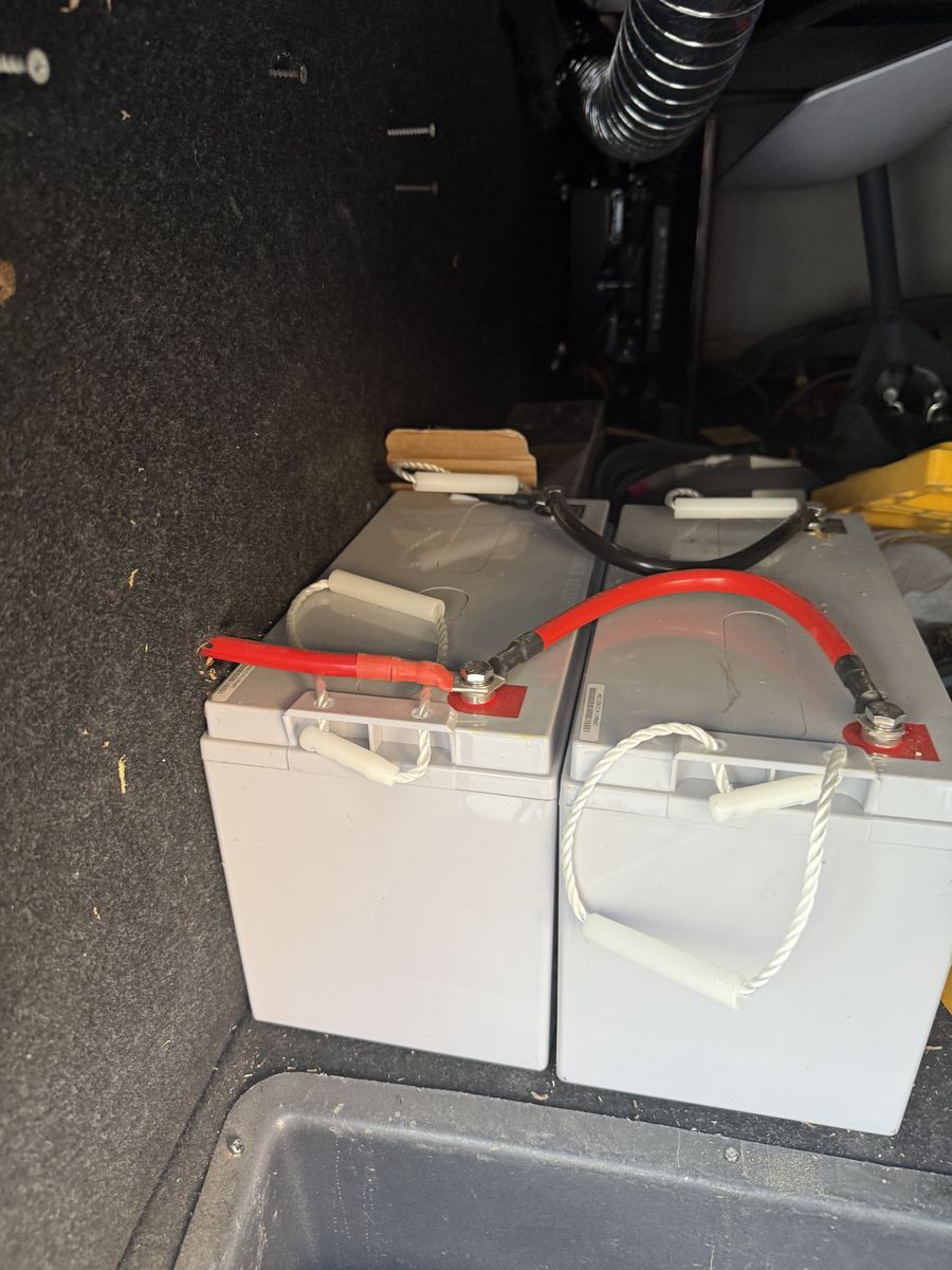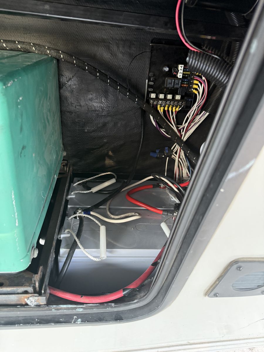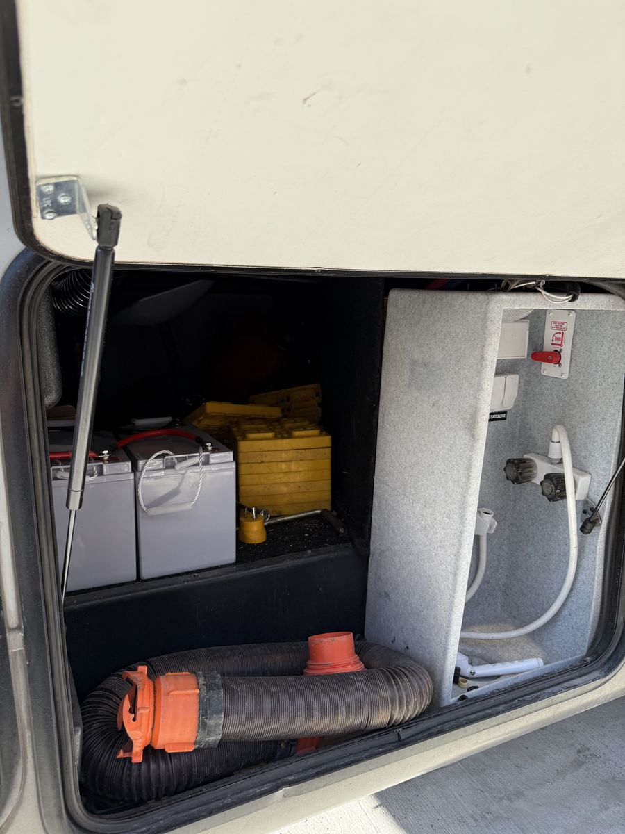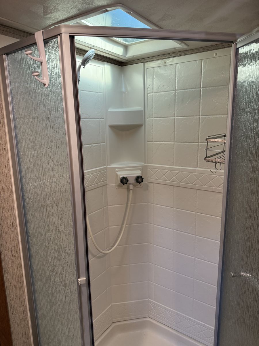 We have added an onboard Cummins generator and auto transfer switch. We also added 6 deep cycle batteries. Other than that it’s got the basic amenities.