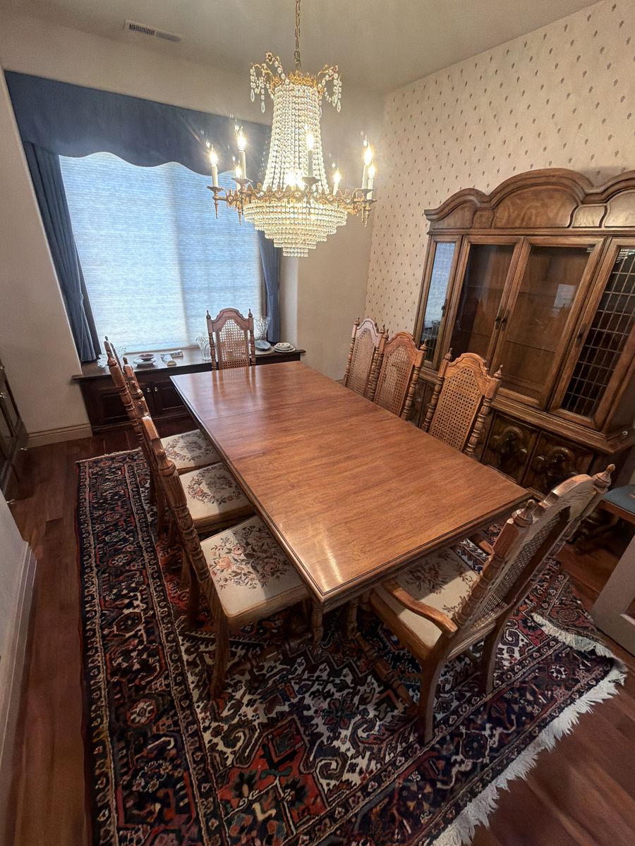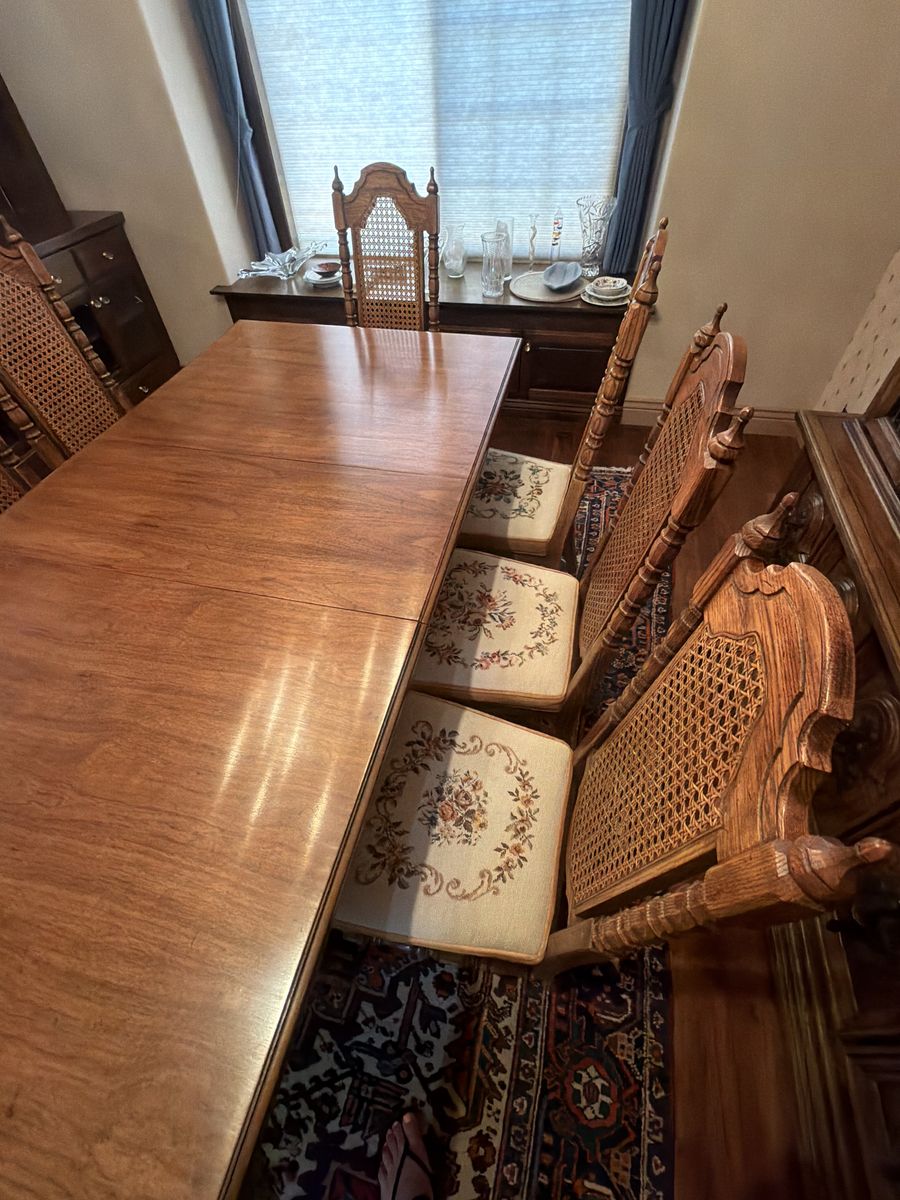 Beautiful hard wood vining table and 8 chairs