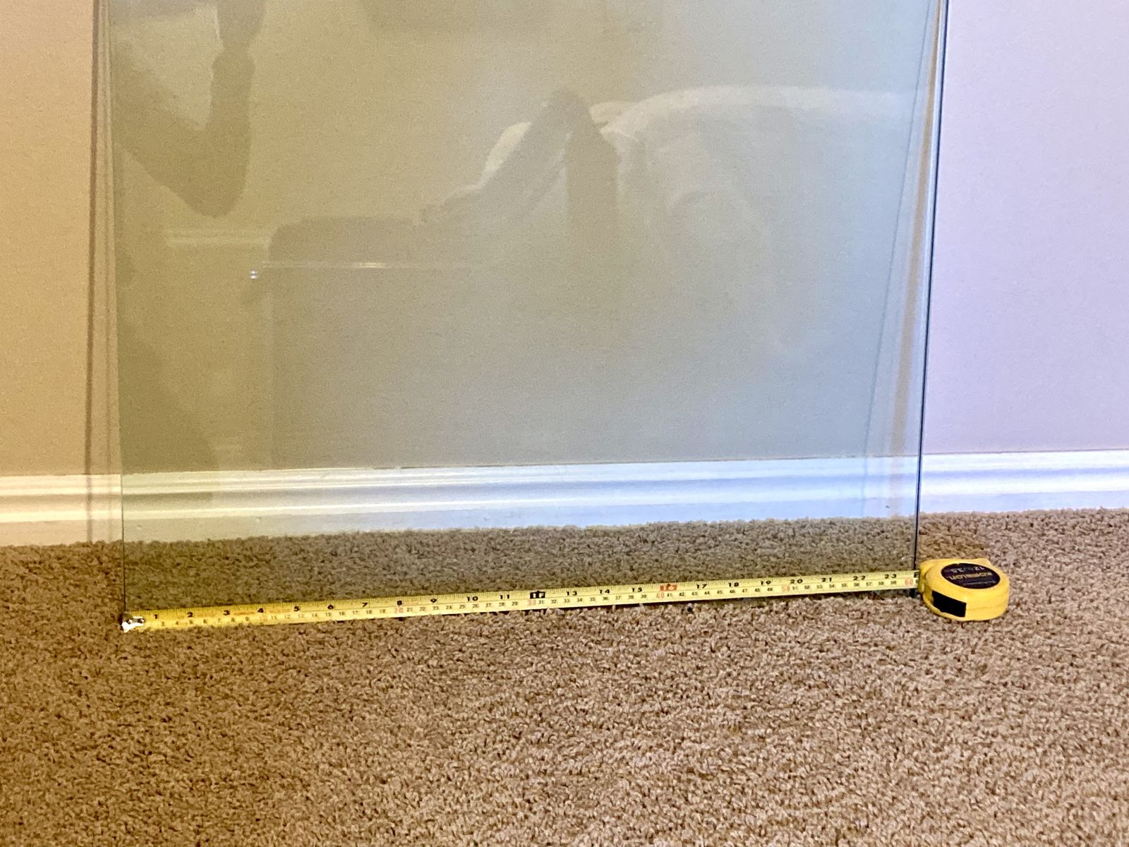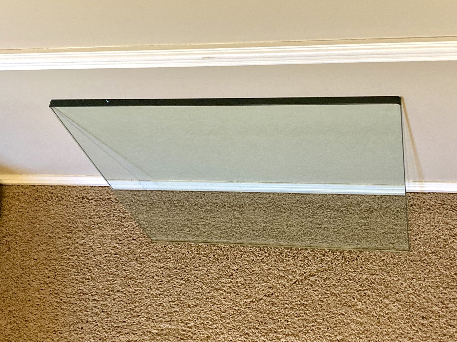 VenmoUp for sale is a heavy-duty glass table top that is 2 ft square and a little over a half inch thick, complete with rounded corners and smooth finish edges.