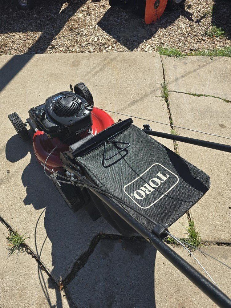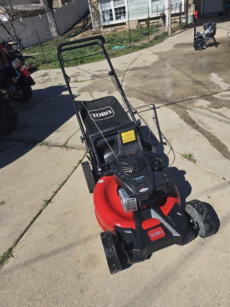 All but brand new! Fresh Oil change, sharpened blades, cleaned deck with hardly a scrarch on it! Doesn't get any better! Fires right up! Let's Mow! 420.00 at Lowes right now plus tax. Come get the same thing for almost 50% less!