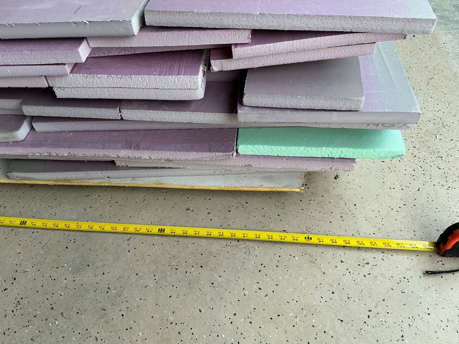 Leftovers from a cargo trailer insulation project. Primarily Ownes Corning 1" thick rigid foam board with a couple other manufacturers scattered in there.