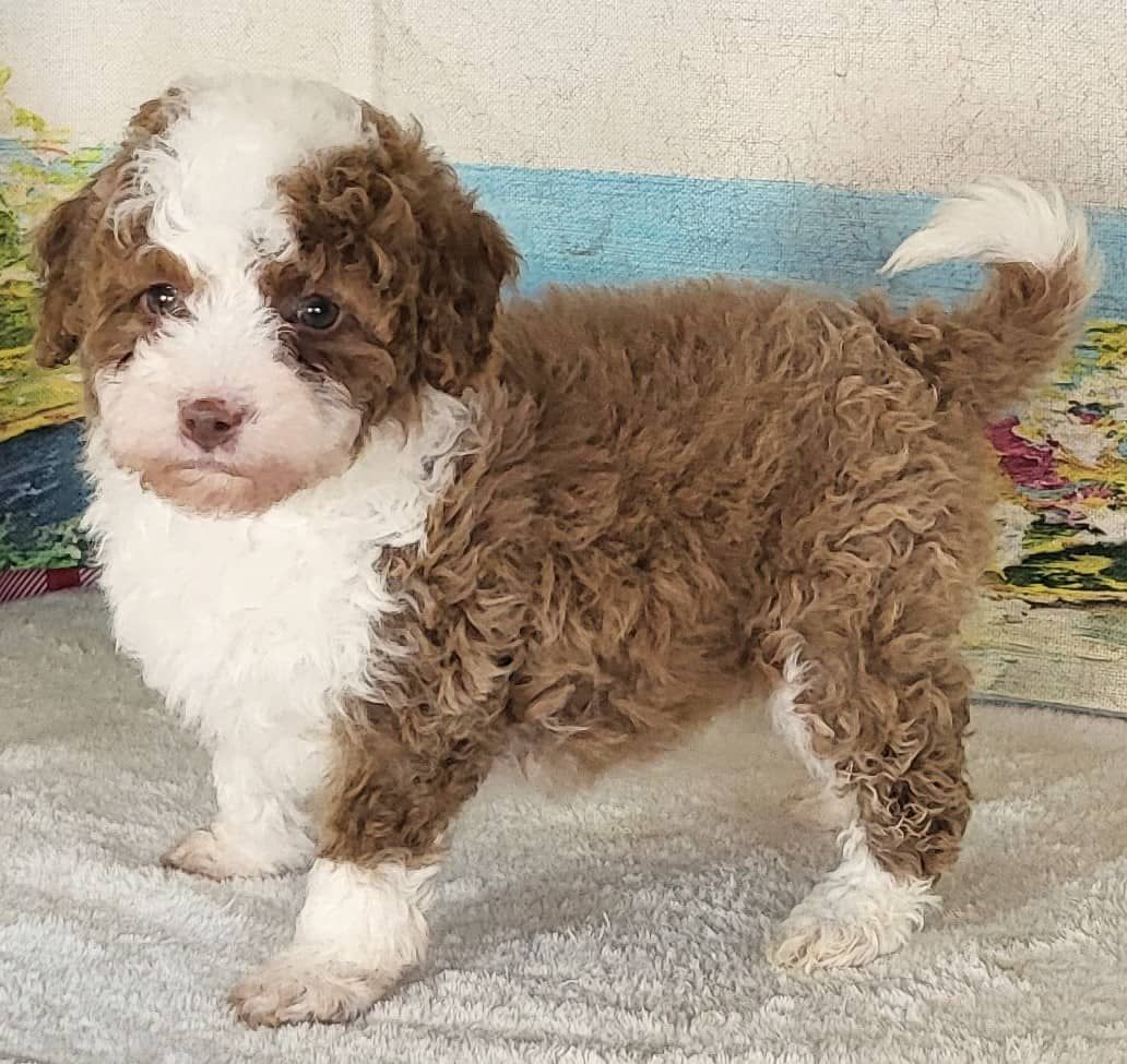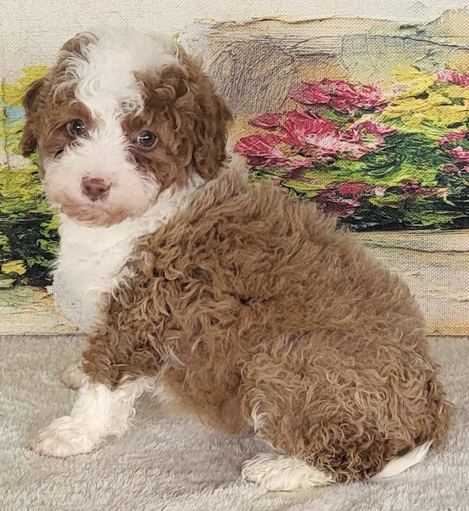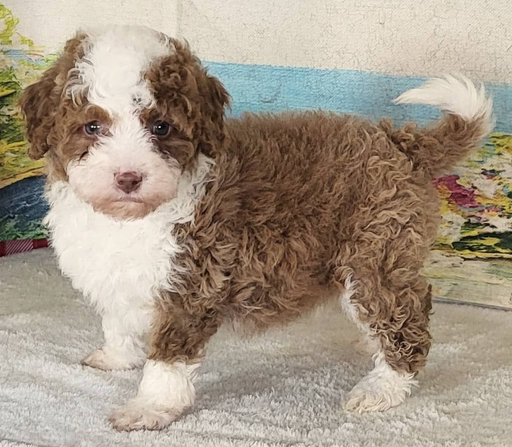 His fluffy, soft coat and charming expression make Boy Lemon especially irresistible, while his petite Micro Bernedoodle size makes him a great fit for many different homes. He is already showing the loving, people-focused temperament Bernedoodles are known for. Boy Lemon is playful, sweet, and full of personality, and with continued love, care, and socialization, he is sure to blossom into a confident, loyal, and well-balanced companion. Boy Lemon is priced at $2400.