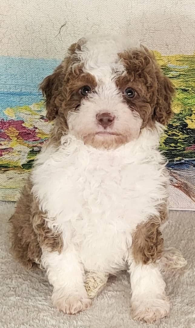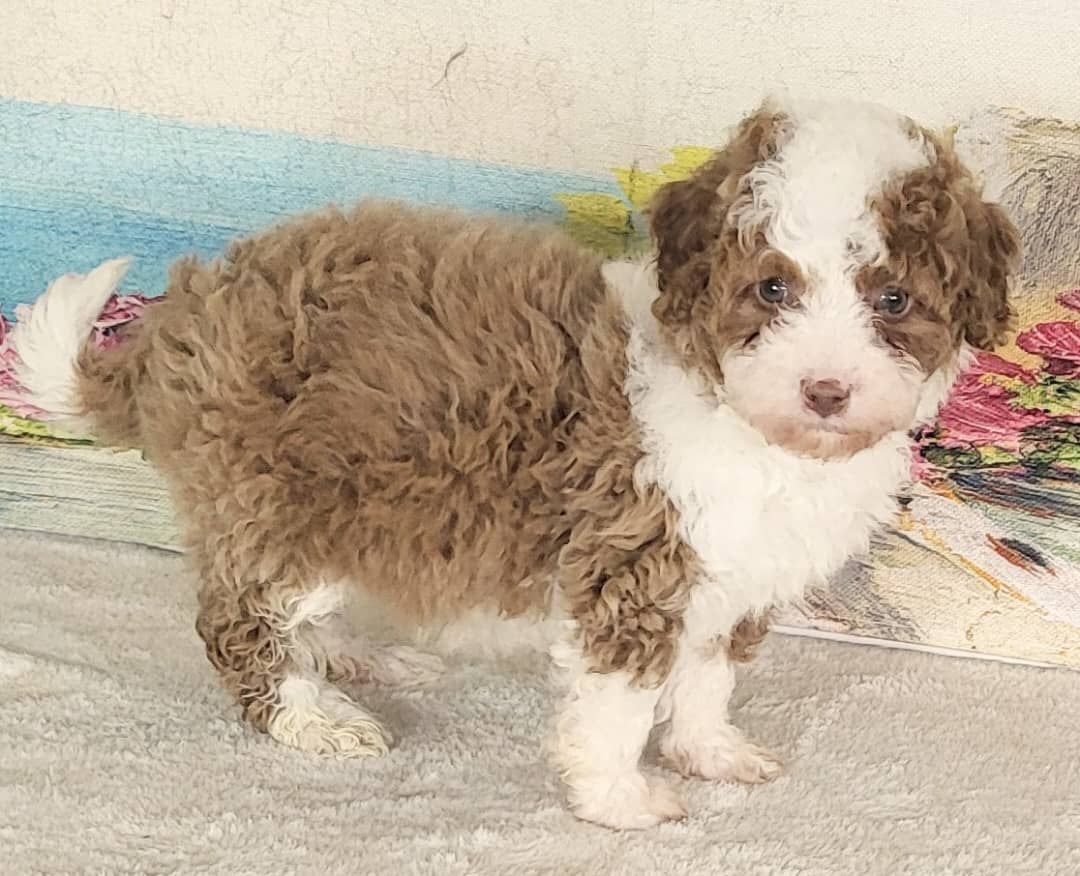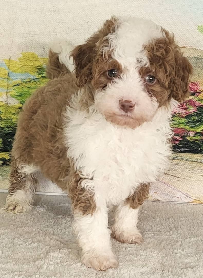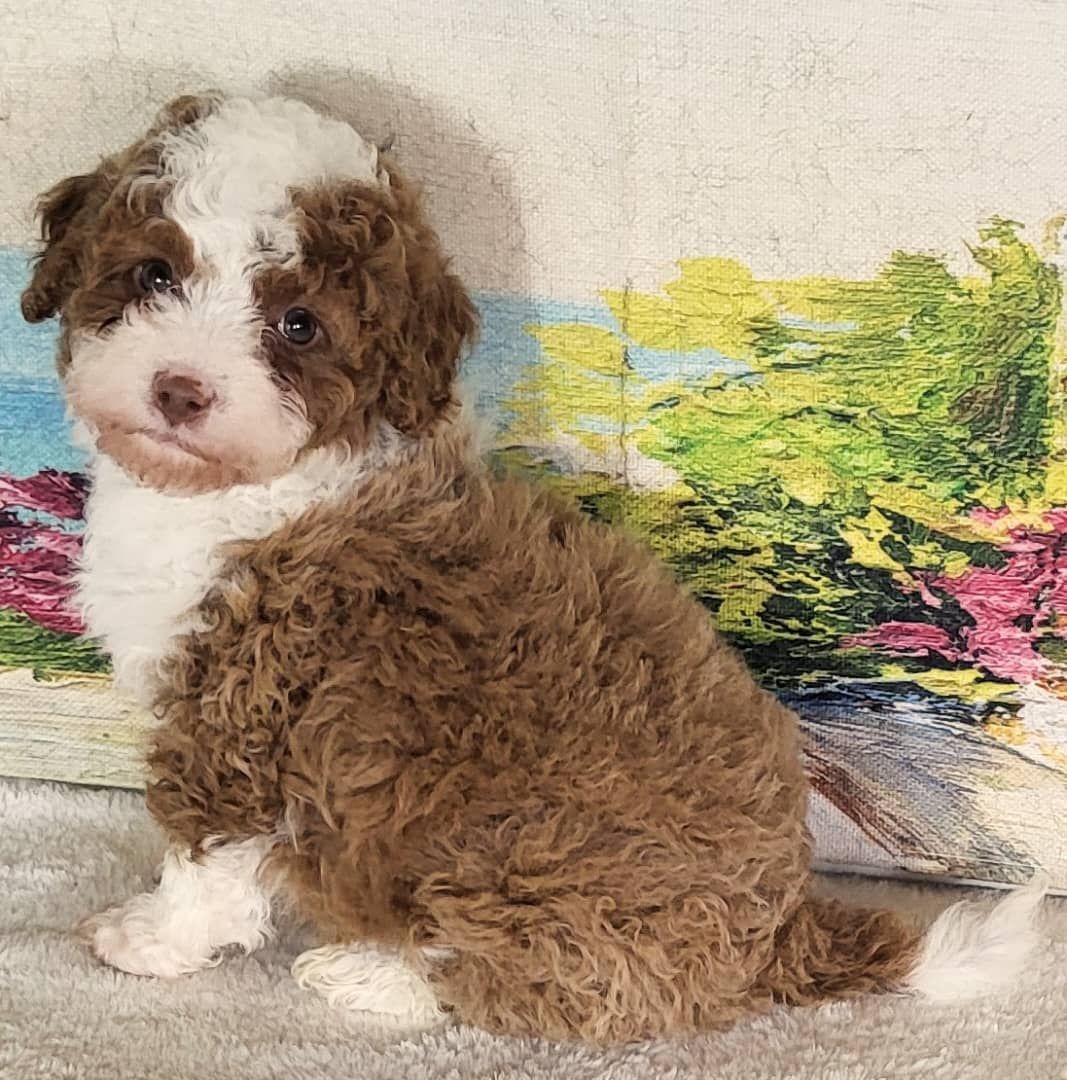 His fluffy, soft coat and charming expression make Boy Lemon especially irresistible, while his petite Micro Bernedoodle size makes him a great fit for many different homes. He is already showing the loving, people-focused temperament Bernedoodles are known for. Boy Lemon is playful, sweet, and full of personality, and with continued love, care, and socialization, he is sure to blossom into a confident, loyal, and well-balanced companion. Boy Lemon is priced at $2400.