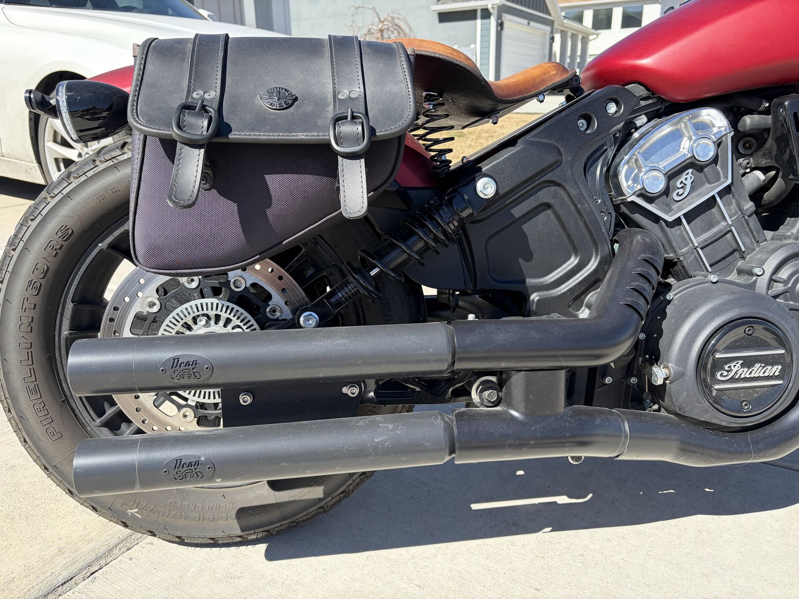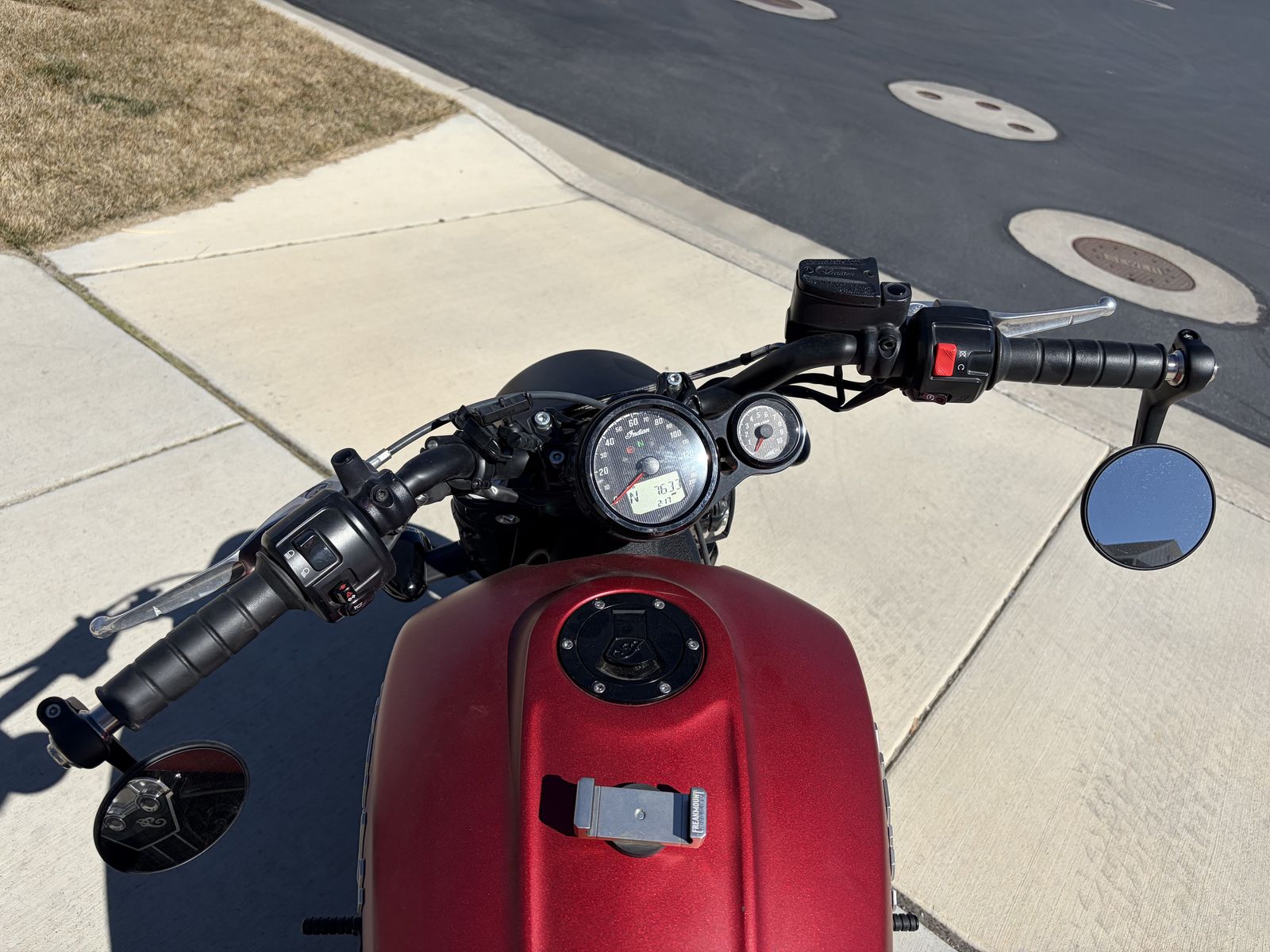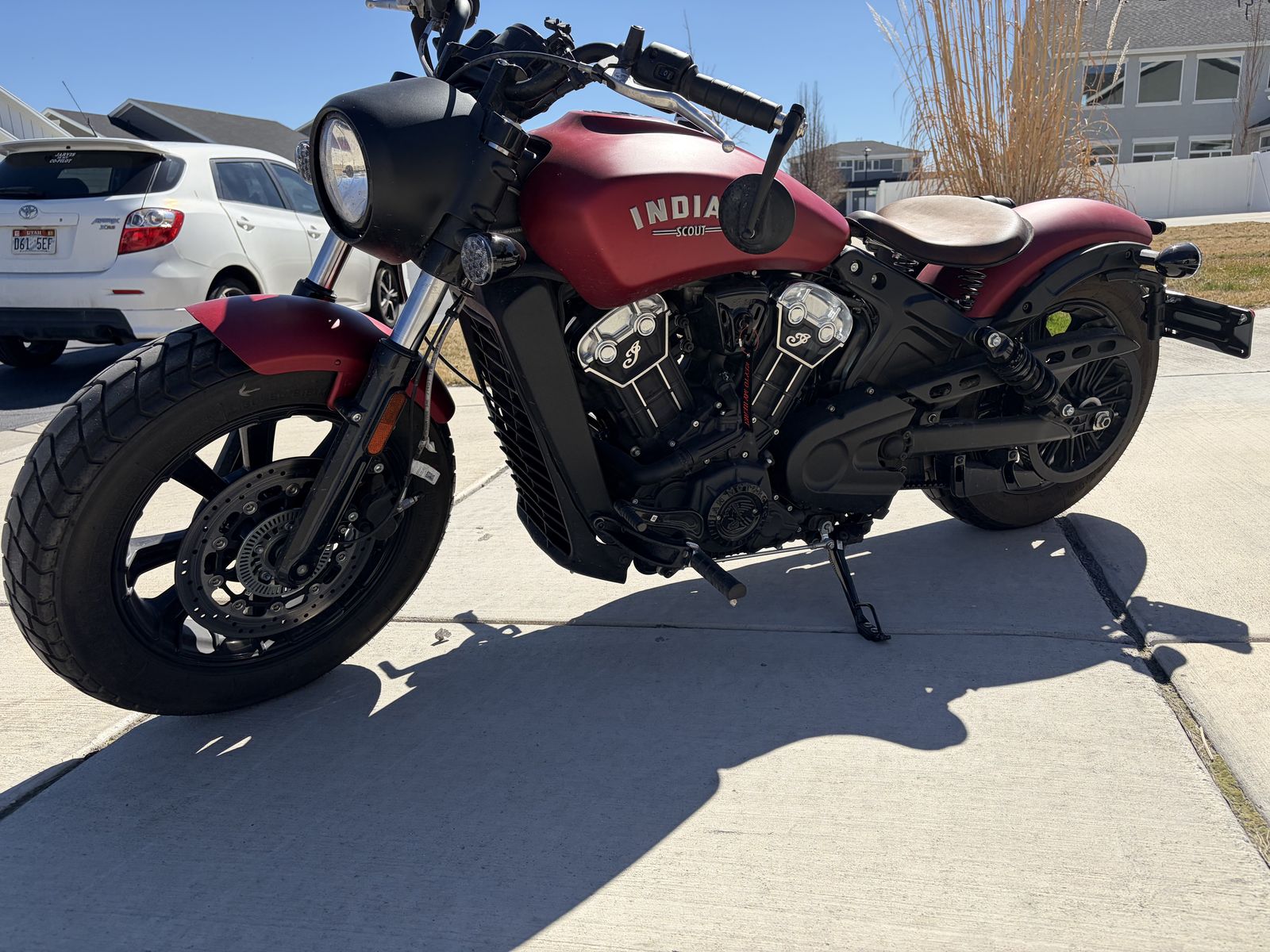 You see before you my pride and joy. The love of my life. Always kept in a garage. 7500 miles. The Indian Scout Bobber.