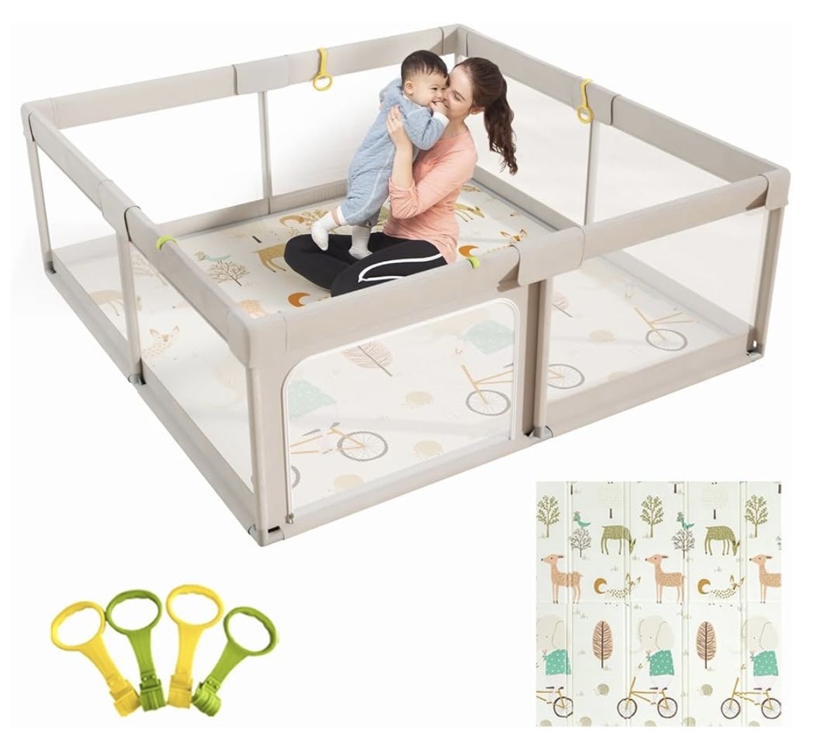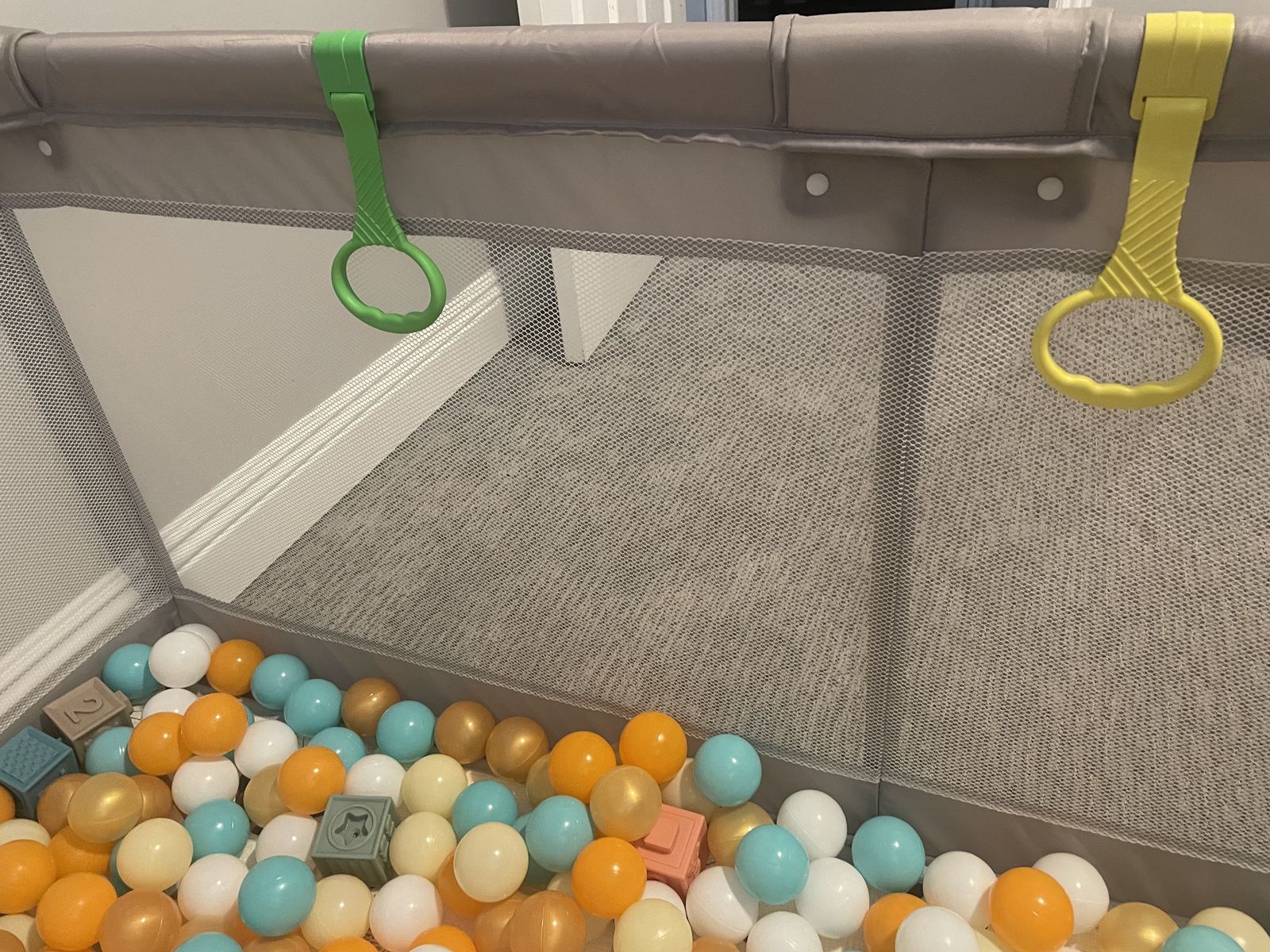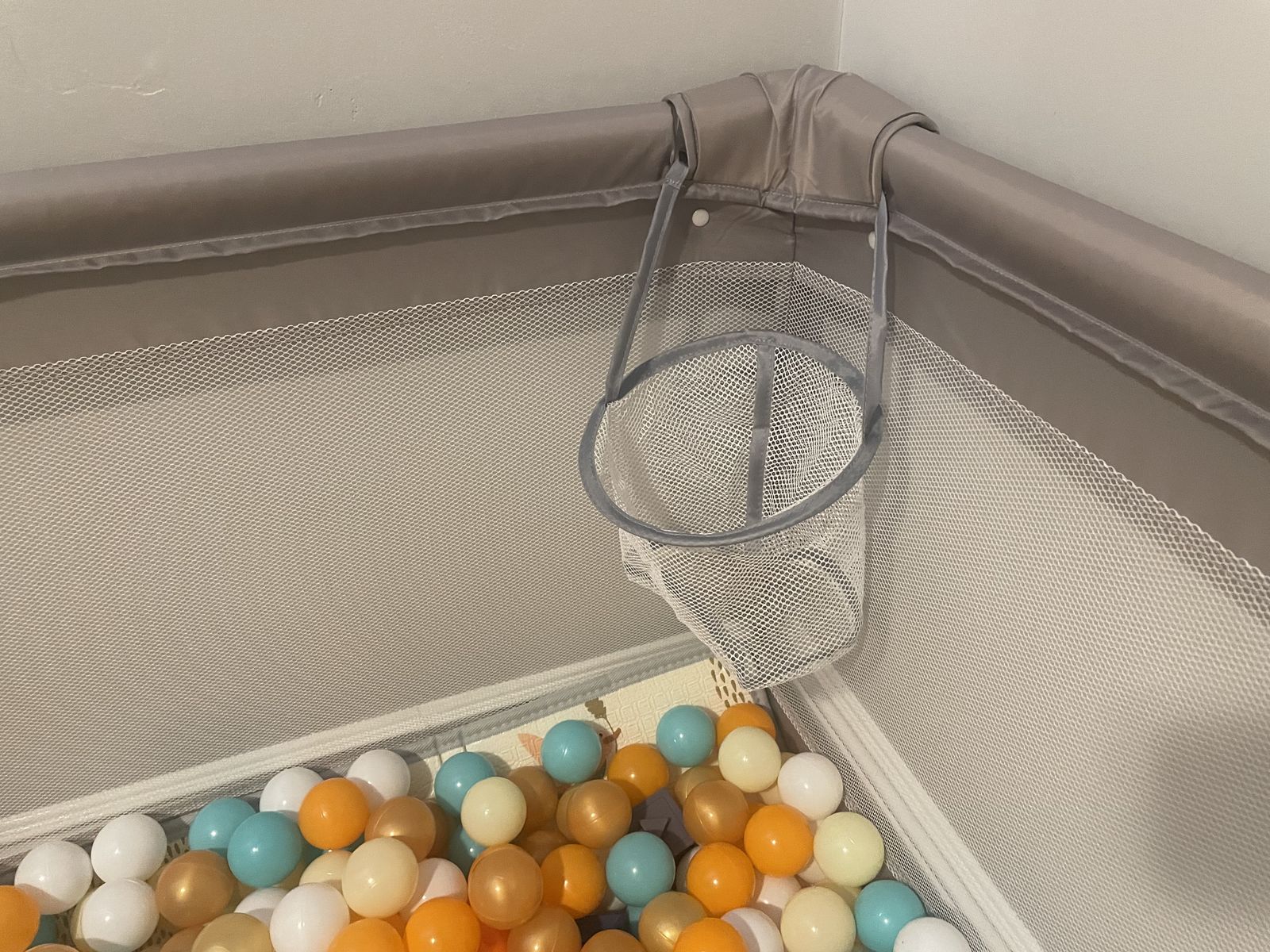 ApplePayThis never-used extra large playpen is 59” x 59” x 27” H and is ideal for babies and toddlers. This playpen is brand new (only been set up but never used). We are relocating and can’t use it in our new location. It is double stitched for extra strength and has a thick steel pipe frame with foam covers on the upper frame to further protect from injury. It includes 4 pull up handles and a corner-mounted basketball net. The playpen also includes a play mat and a travel bag for storage when disassembled. We are also including over 1100 2.2 inch ball pit balls which will fill the bottom area to keep your little ones fully occupied! This deluxe playpen is spacious enough for both baby and parent to play together. It has a zippered gate to allow easy access into the playpen. It is also soil resistant and cleans easily with a damp cloth. To keep the baby safely in sight, the side panel is made of a visible breathable mesh, and the playpen has non-slip suction cups on the bottom to make it difficult to tip over or move. Get this combined ensemble while it’s a great deal and still available! We will sell the ball pit balls separately if desired, which can be used for other activities like ball pits and trampolines.