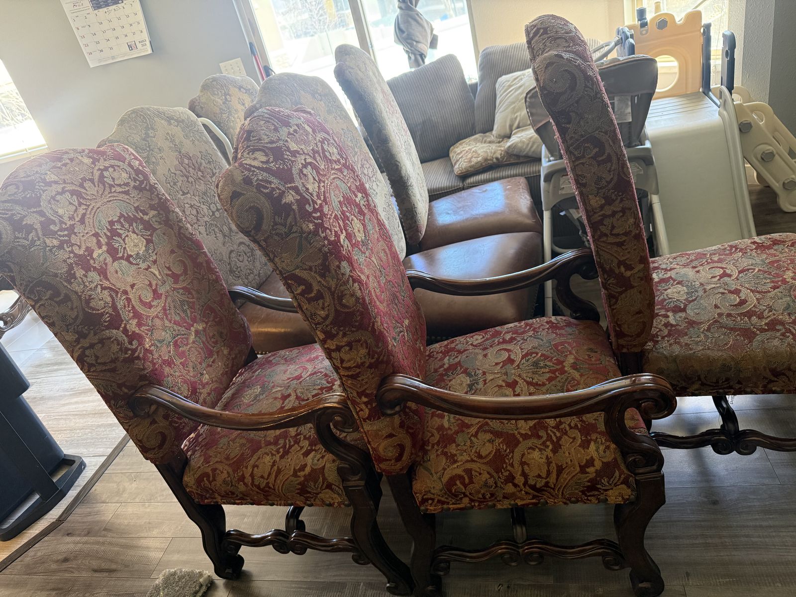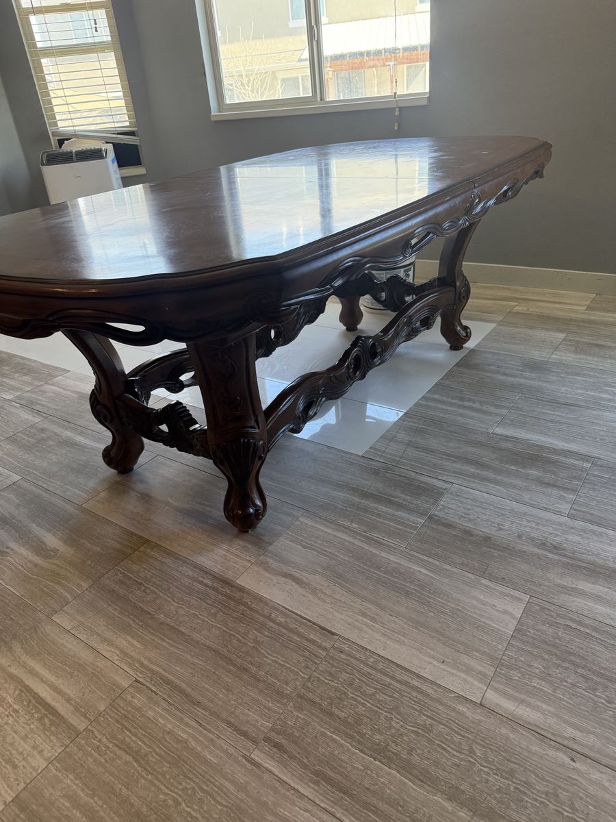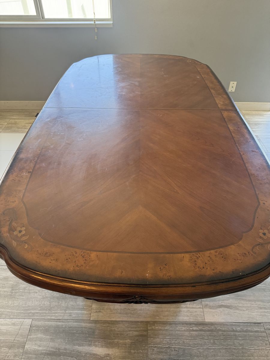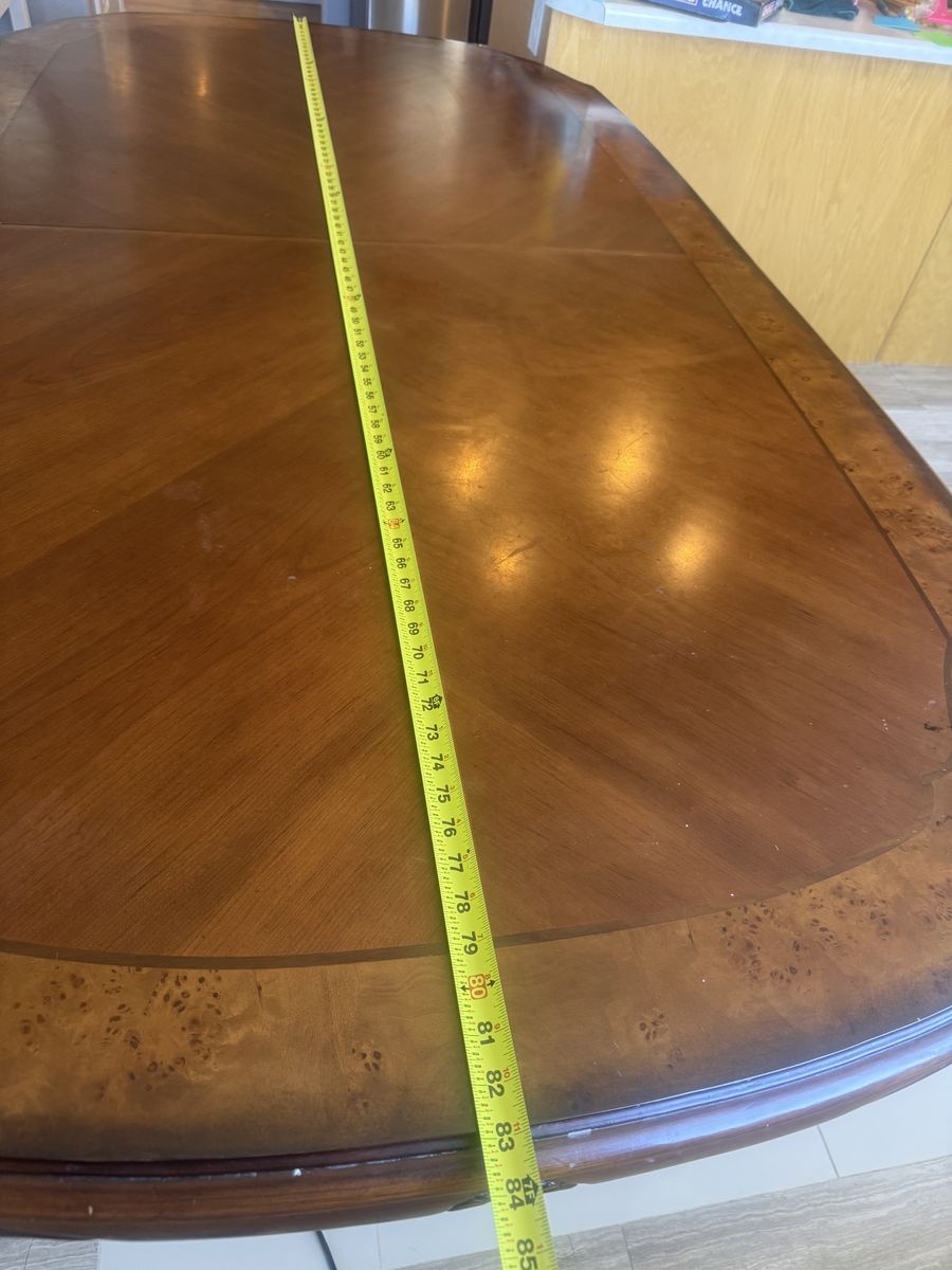 ApplePayTable with 8 chairs. Sizes are in pics, it could get bigger than pics have 2 extra pieces that expands bigger. I need space for small table that’s why I’m selling it cheap. $250 obo