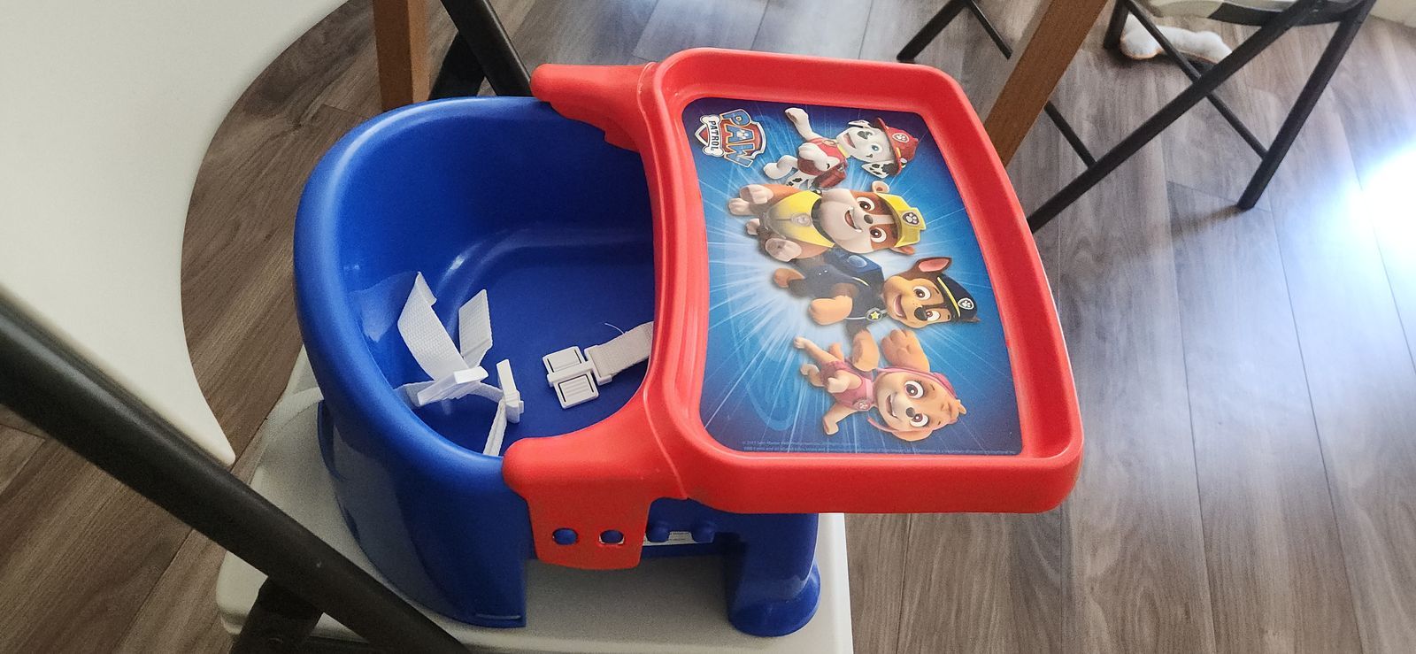 VenmoBooster highchair with tray that clips off on both sides can use without. Strapped to chair. Bright colorful Paw Patrol. FCFS X-POSTING Smoke-free