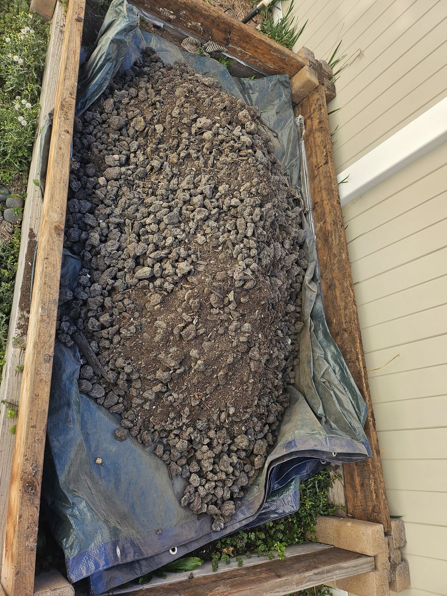 I don't know the exact quantity, its the pile on top of the tarp, which is in a 4x6 garden bed. If you want it, you'll have to pick it up and transfer it yourself into a truck/container, however you want to store it.