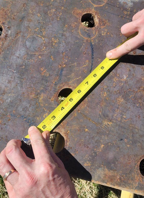 VenmoSteel plate 120 lbs 1 1/4" thick 19"x19" Holes are 1.5" We have 5 total. You could weld a 6" piece of pipe in the middle and use as an umbrella stand that would never blow over. Or a permanent industrial looking stepping stone that would survive forever. $15 a piece or take all 5 for $60.